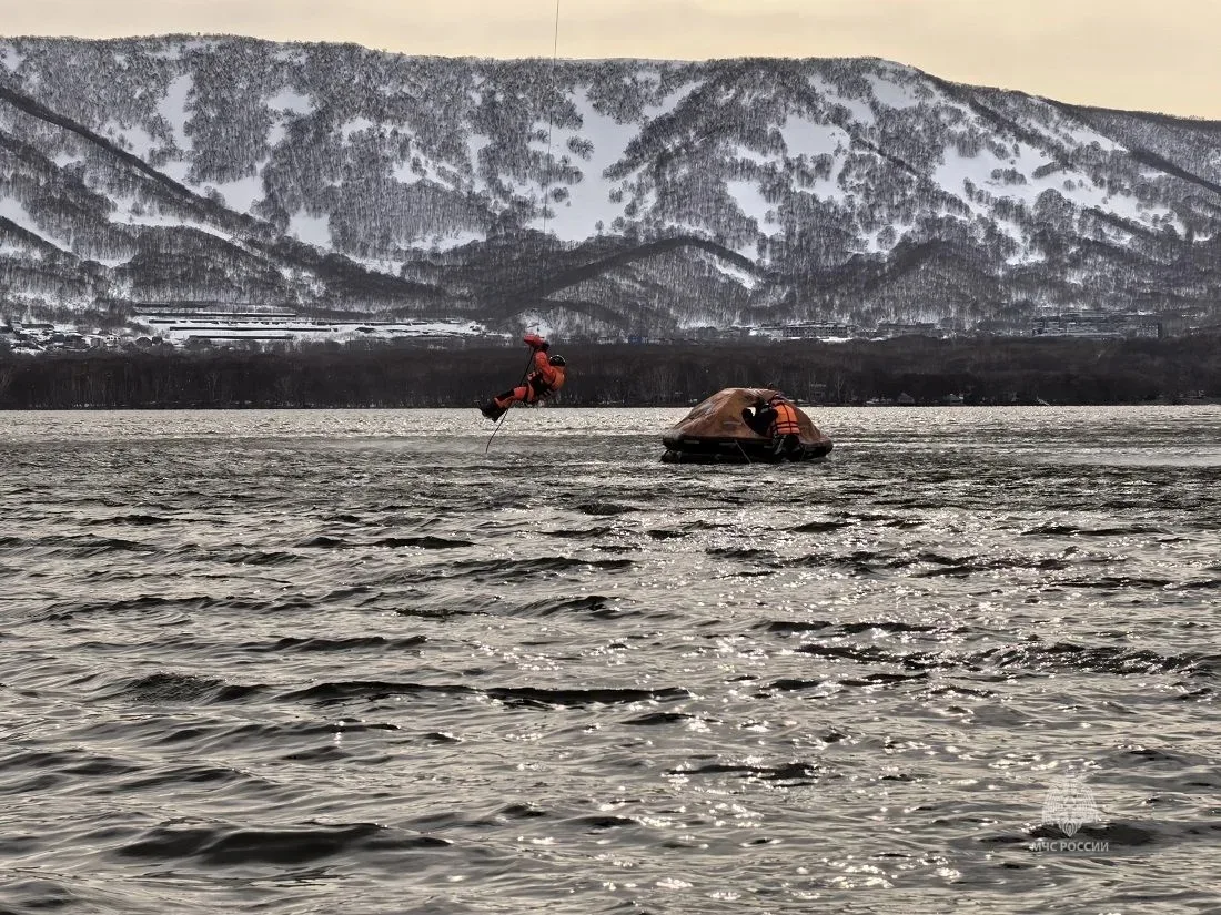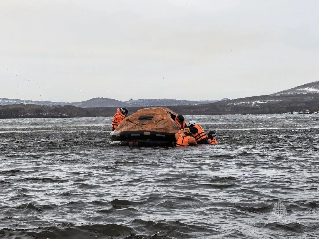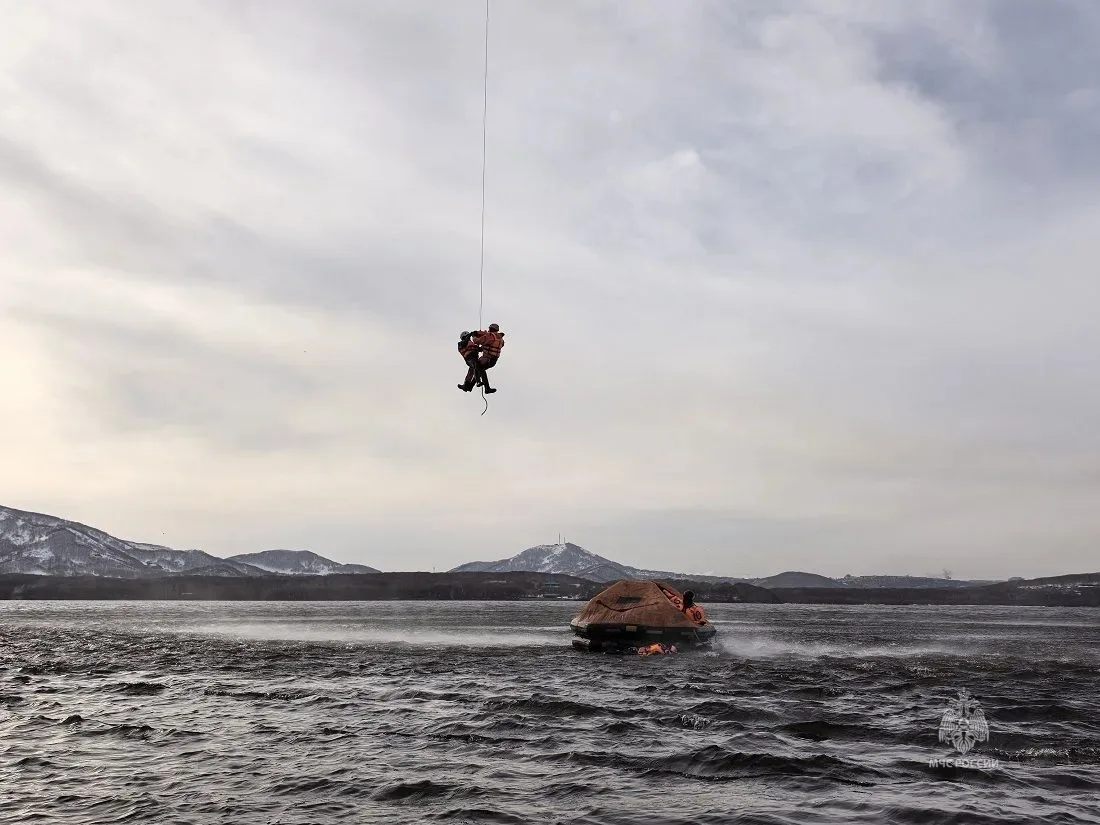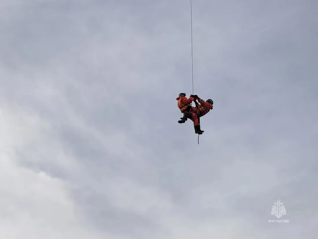 Кроме того, был отработан подъём пострадавшего с воды с помощью лебёдочной грузовой системы СЛГ-300.