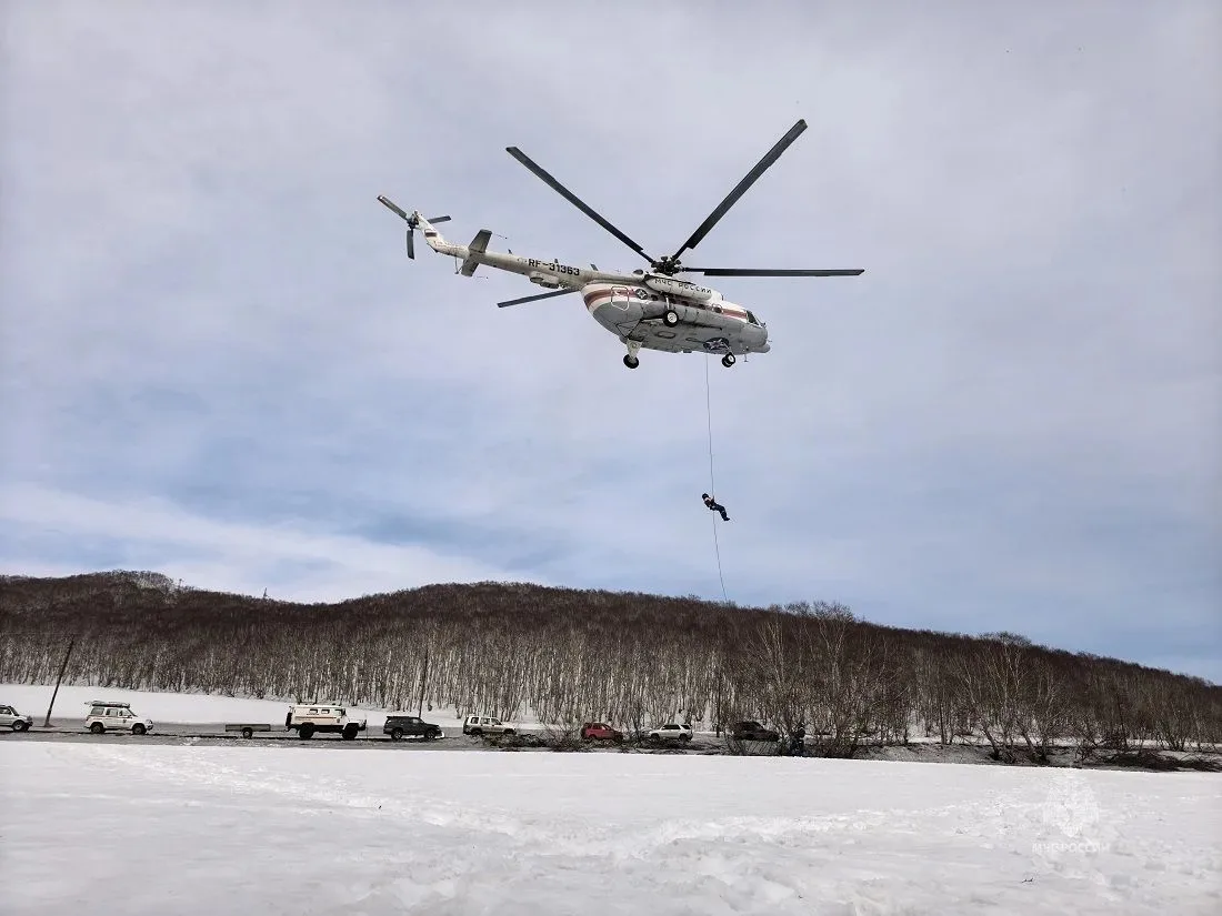Очередные десантные спуски провели сотрудники поисково-спасательного отряда и специализированной пожарно-спасательной части Главного управления МЧС России по Камчатскому краю совместно с экипажем МИ-8 МЧС России. Всего были задействованы 18 спасателей.
