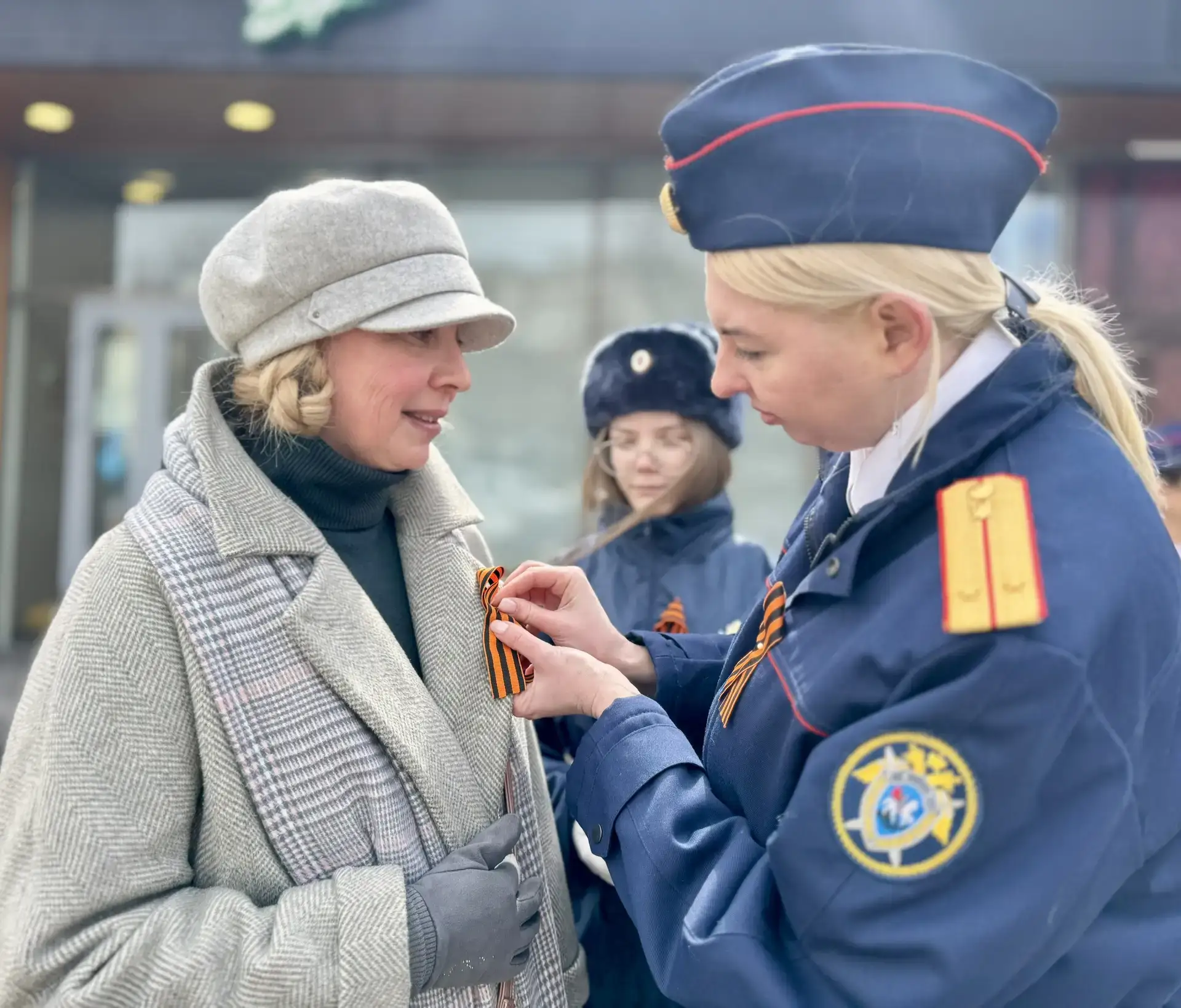 Возложив цветы к памятнику танку Т-34, установленному в честь 30-летия победы советского народа в Великой Отечественной войне 1941-1945 годов, офицеры ведомства вместе с кадетами раздали георгиевские ленточки жителям краевого центра. Люди с благодарностью принимали этот важный символ, многие поделились историями о своих дедах и прадедах, воевавших на фронтах, и с гордостью прикрепили ленточки к одежде.