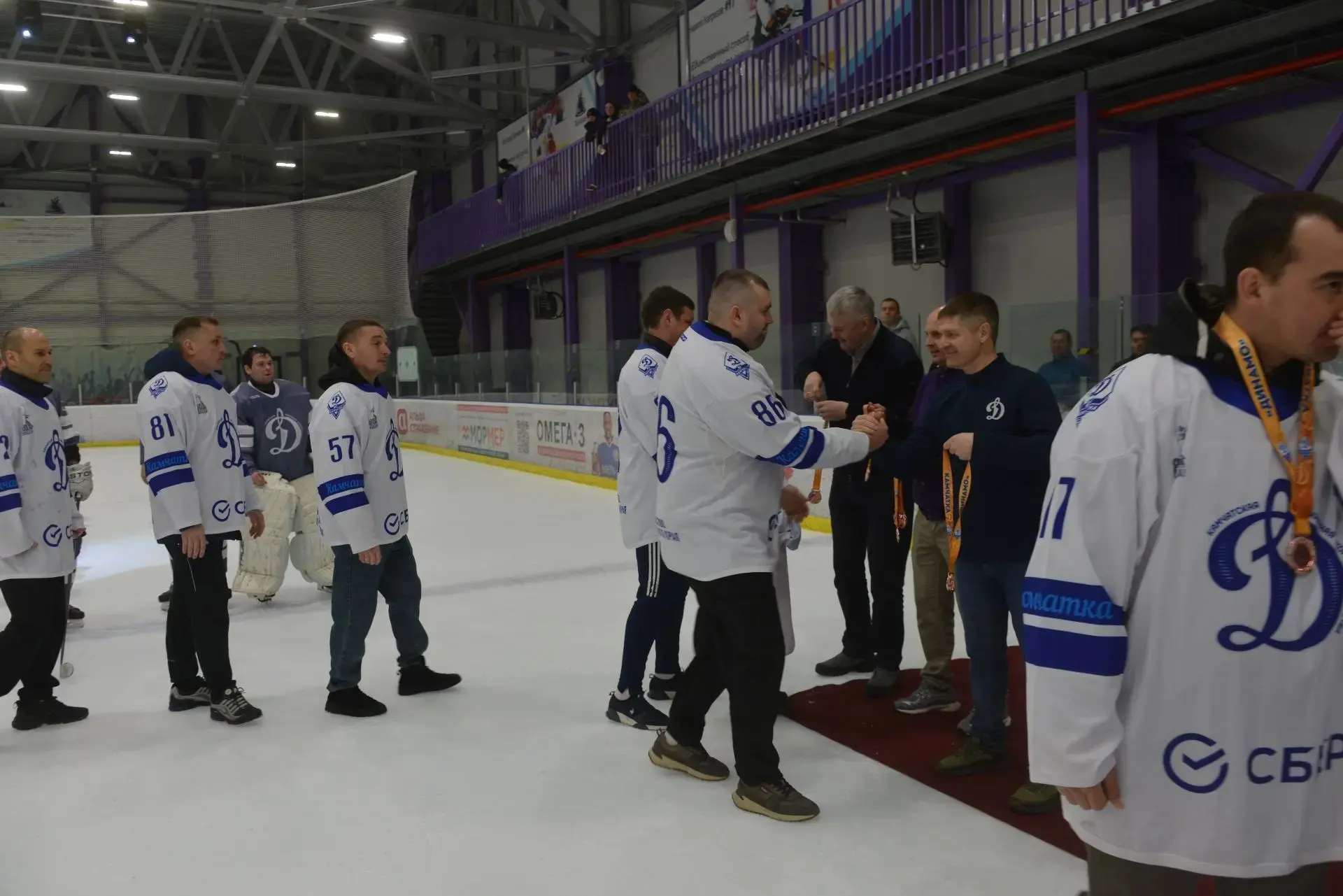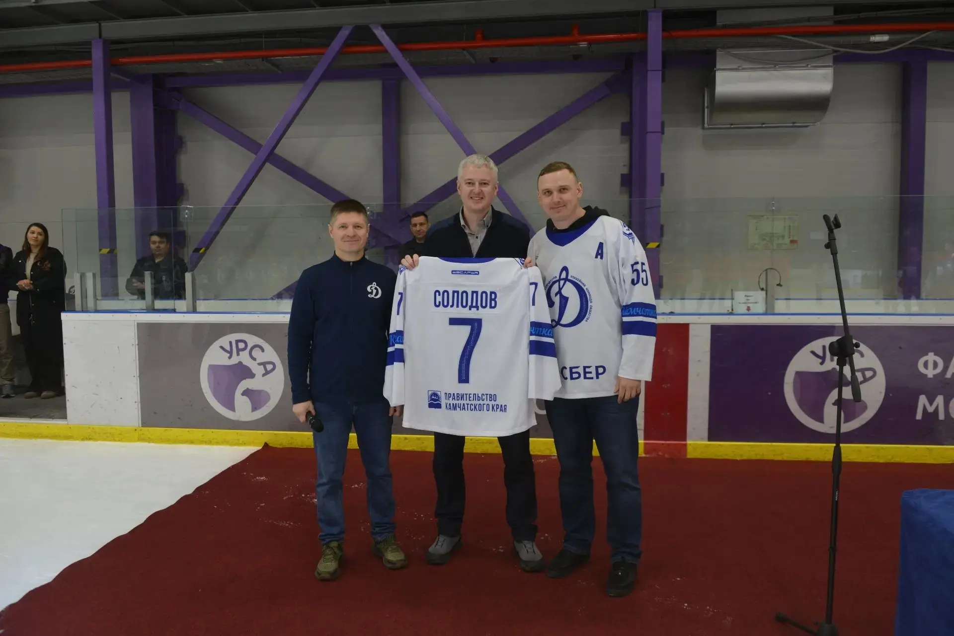 Владимиром Солодовым вручили заслуженные награды и пожали руки не только спортсменам, но и вышедшим на лёд вместе со своими отцами главным