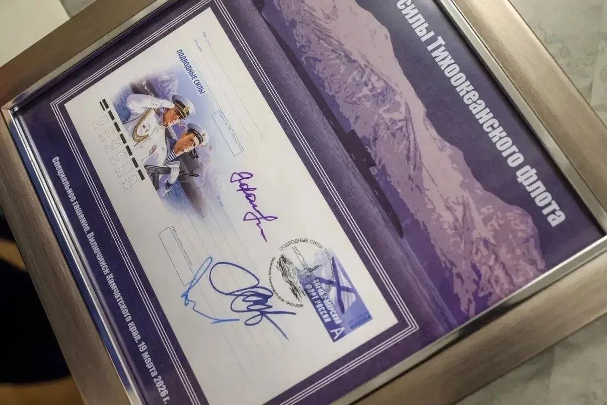Тираж конверта – 500 000 экземпляров. На марке изображён Андреевский флаг, на основном поле конверта — военные моряки и атомные подводные крейсеры проектов «Борей» и «Антей» на фоне камчатских вулканов.