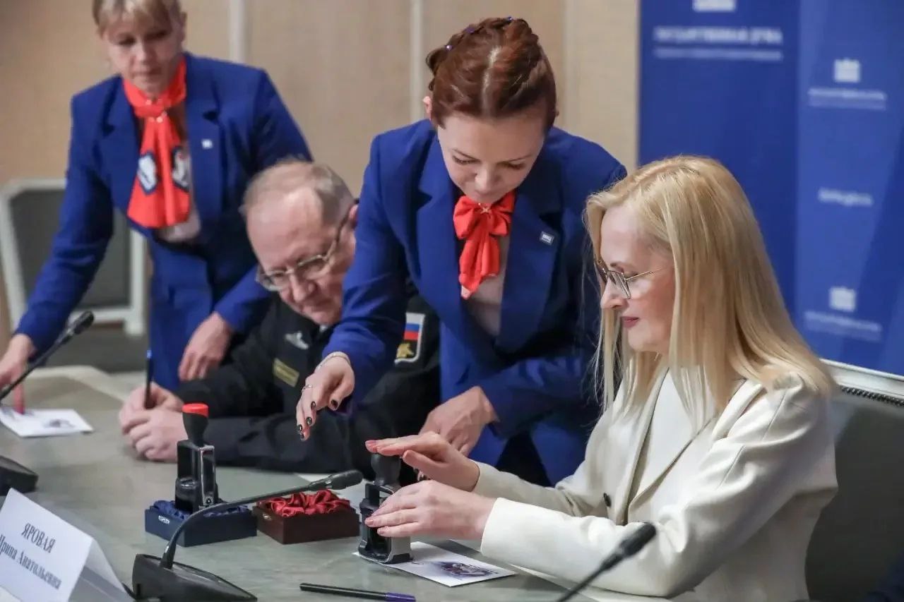 В церемонии гашения участвовали Ирина Яровая, адмирал, начальник Главного штаба ВМФ Владимир Касатонов и генеральный директор «Почты России» Михаил Волков.