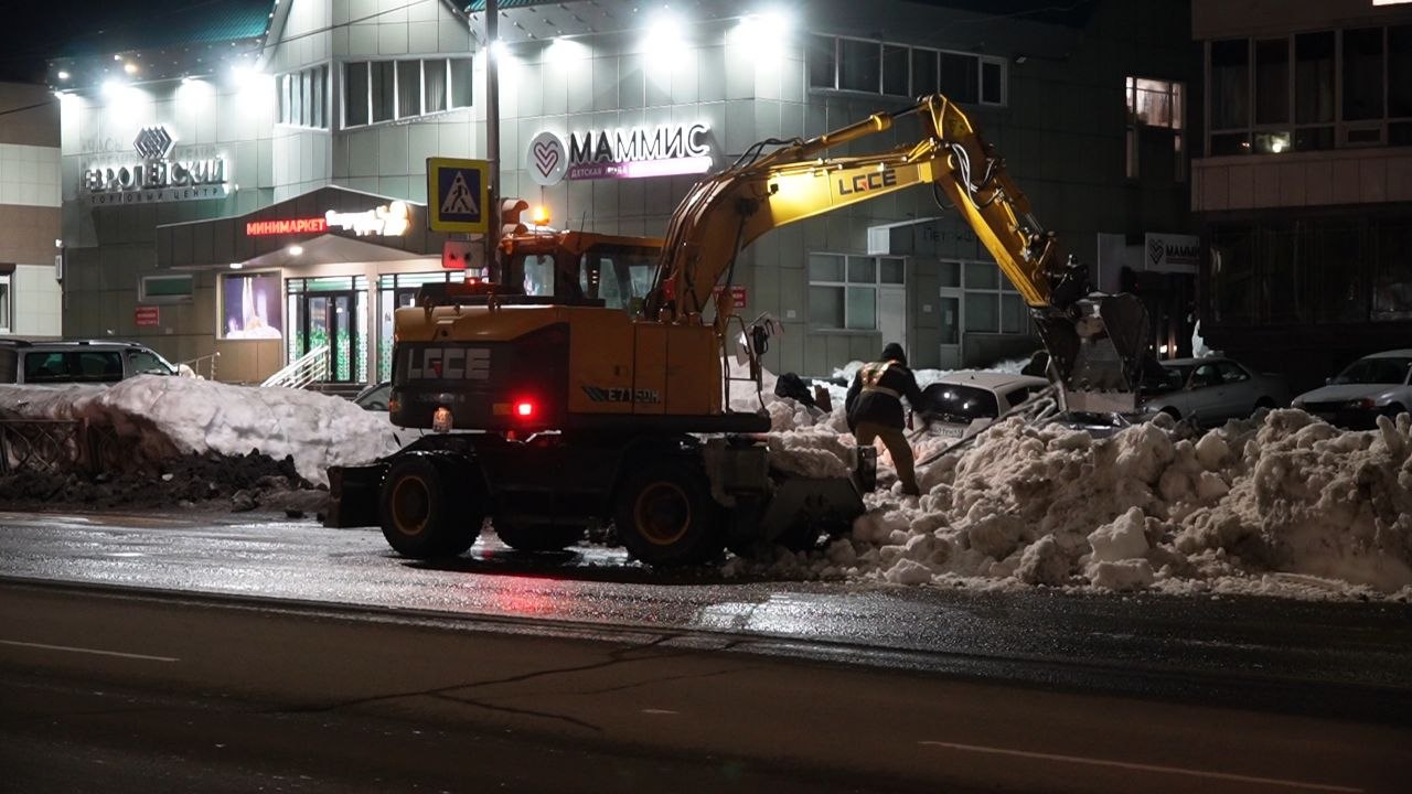 Параллельно продолжают вывозить снег и очищать дороги от наледи.