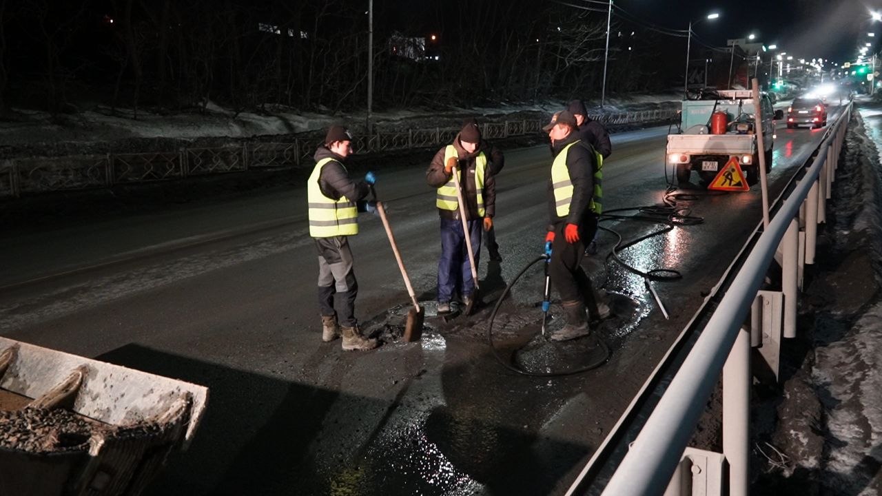 Бригады уже работают на Зеркальной, у ЦУМа, на Дачной. В ближайшее время выйдут на Океанскую, у ФОКа «Звёздный» и «Водник».