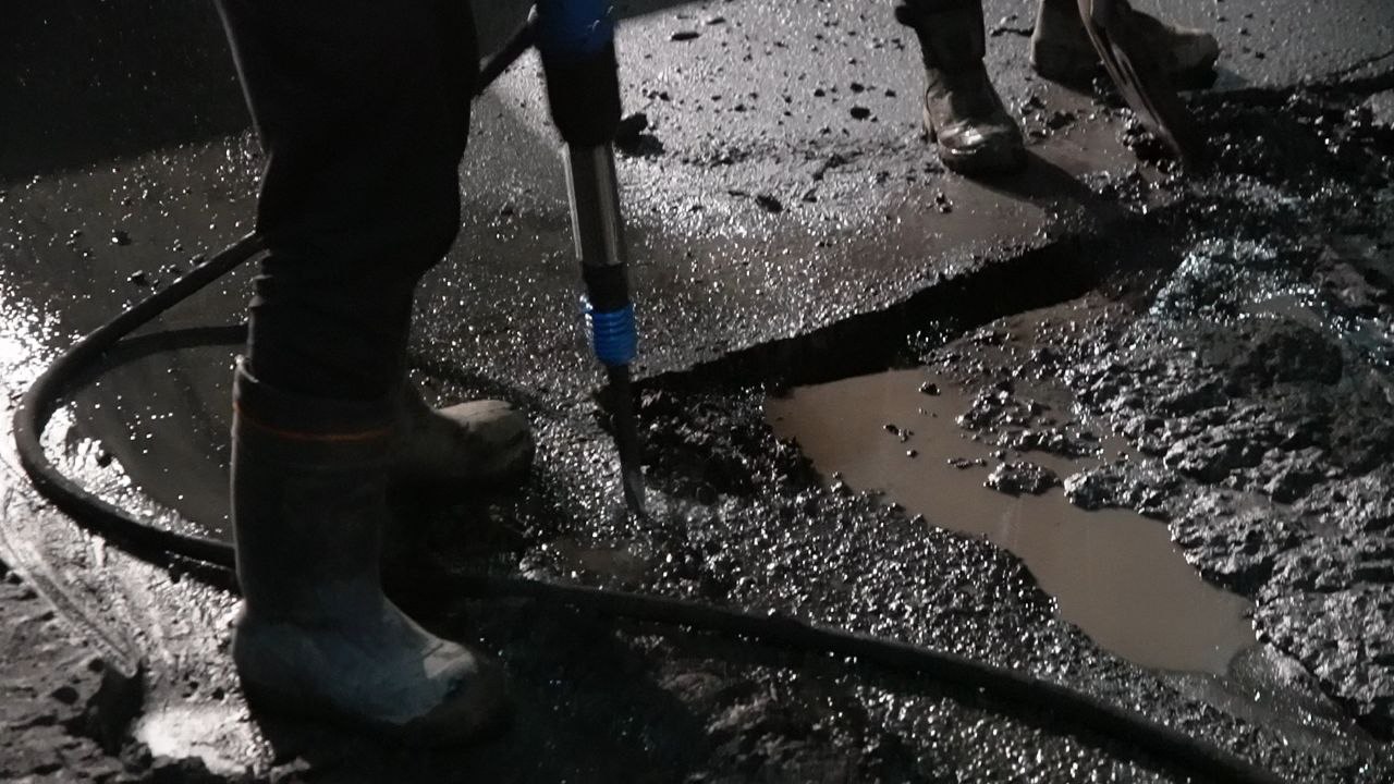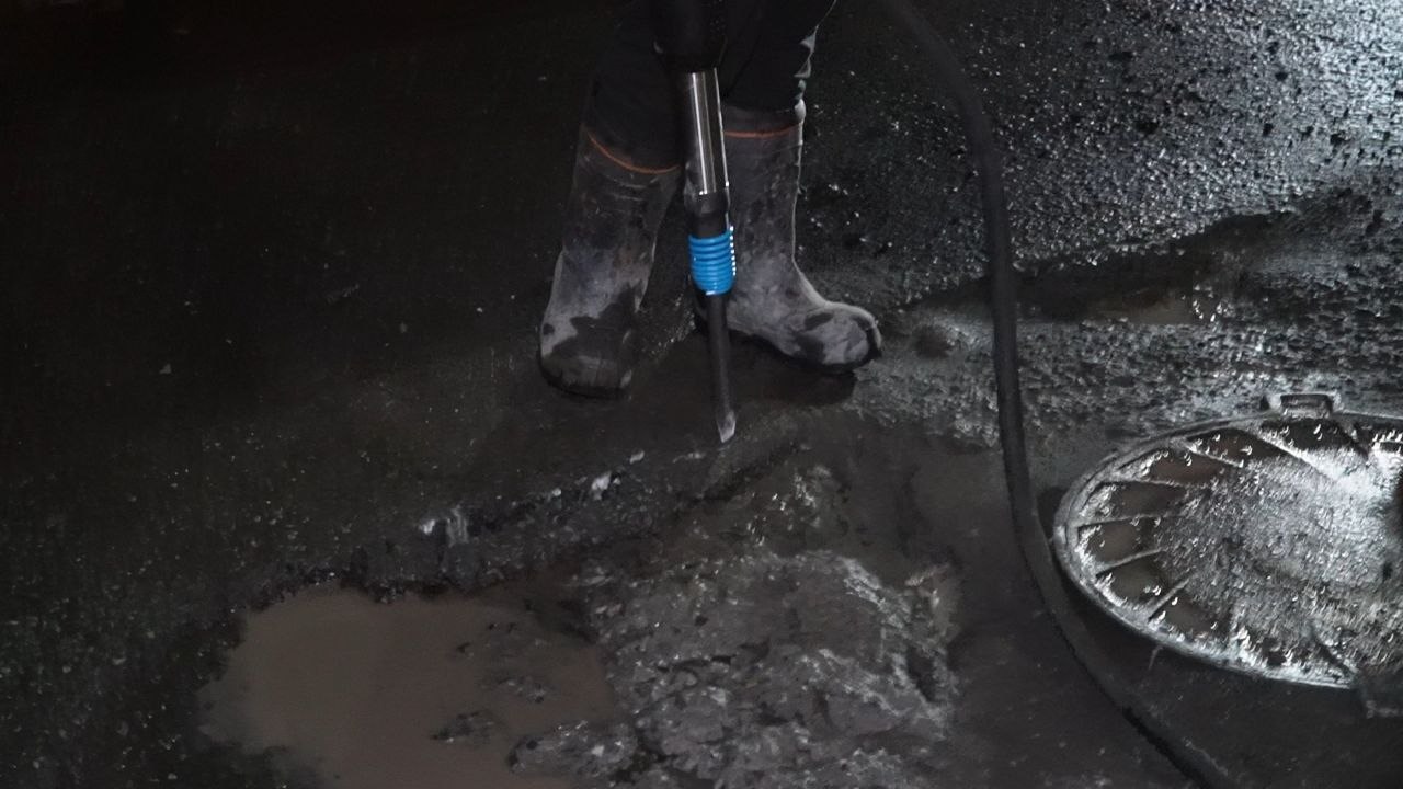 Сейчас используют литой бетон и битумную смесь — это временная мера. Через две недели планируют перейти к полноценному ремонту асфальтом с завода.