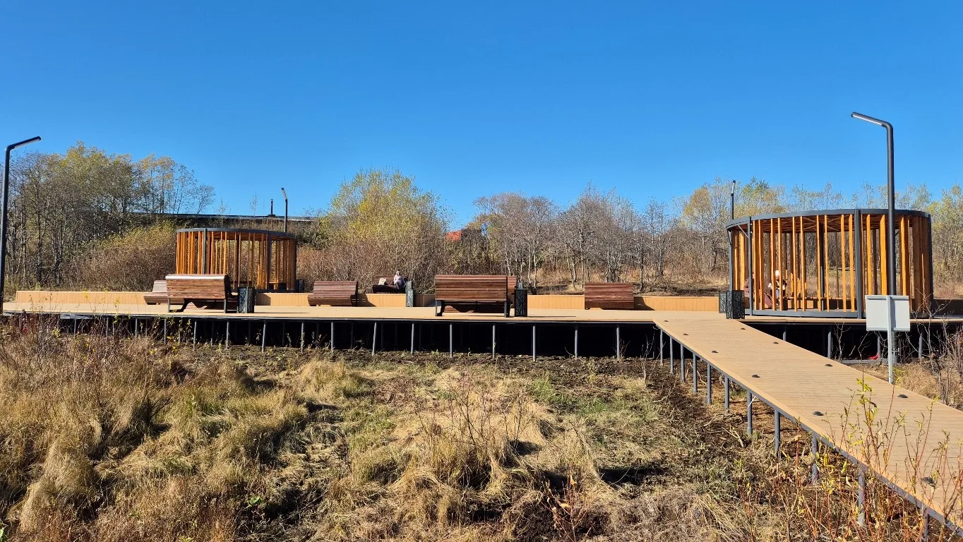 Напомним, что в 2025 году горнодобывающая компания «Хайлэнд Голд» (сейчас — «Ареал») завершила первый этап благоустройства экопарка. Была обустроена освещенная пешеходная тропа, смотровая площадка и скалодром.