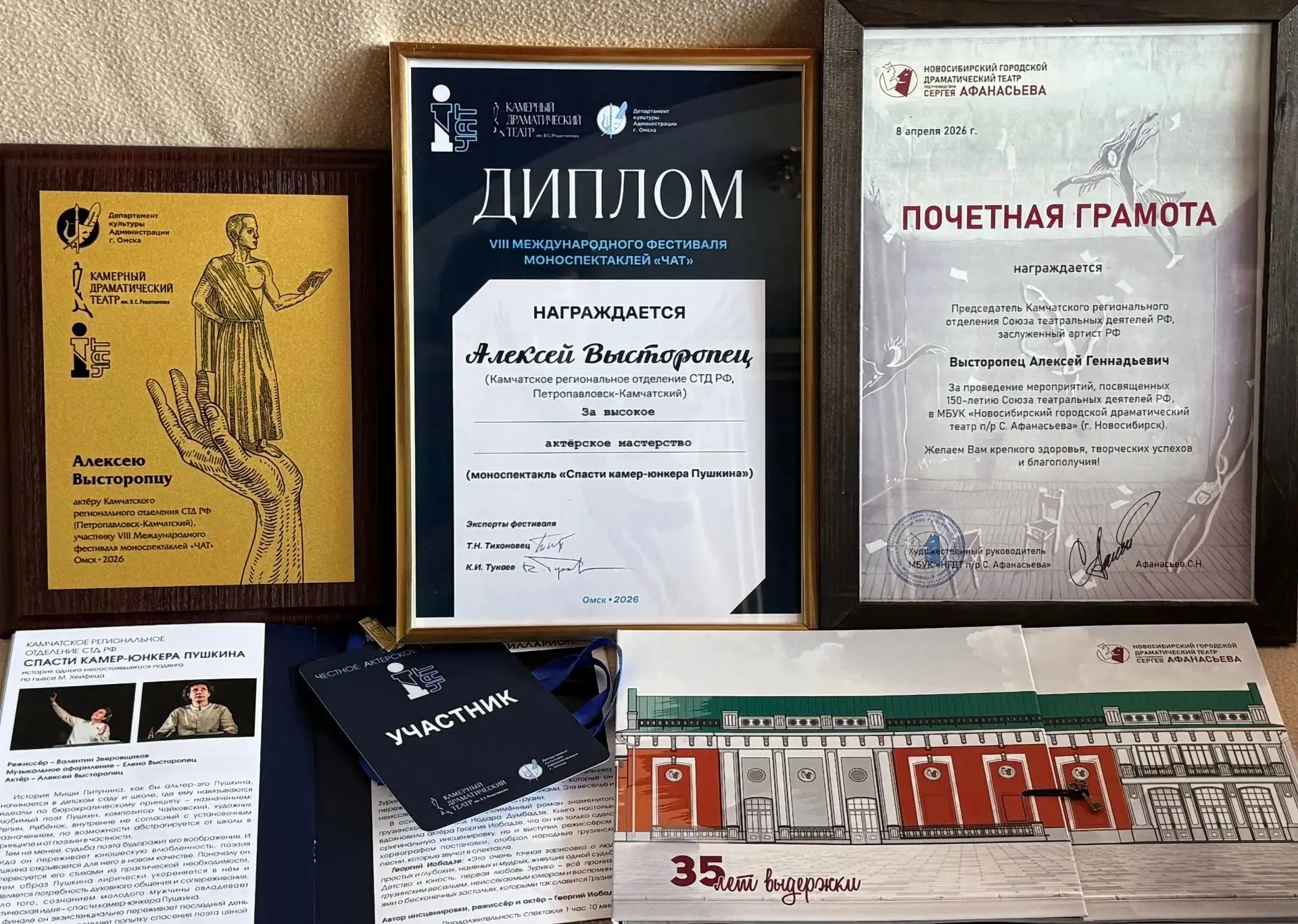 Спектакль «Спасти камер-юнкера Пушкина» съездил в Омск и привёз уже восьмую победу. На сей раз он стал лауреатом фестиваля моноспектаклей «ЧАТ».