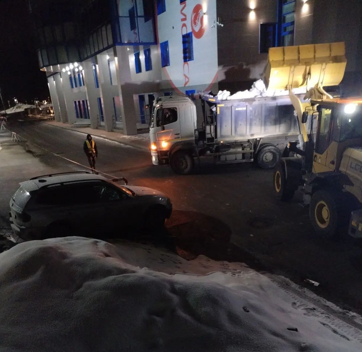 В ночную смену в краевой столице продолжались работы по расчистке тротуаров и вывозу снега.