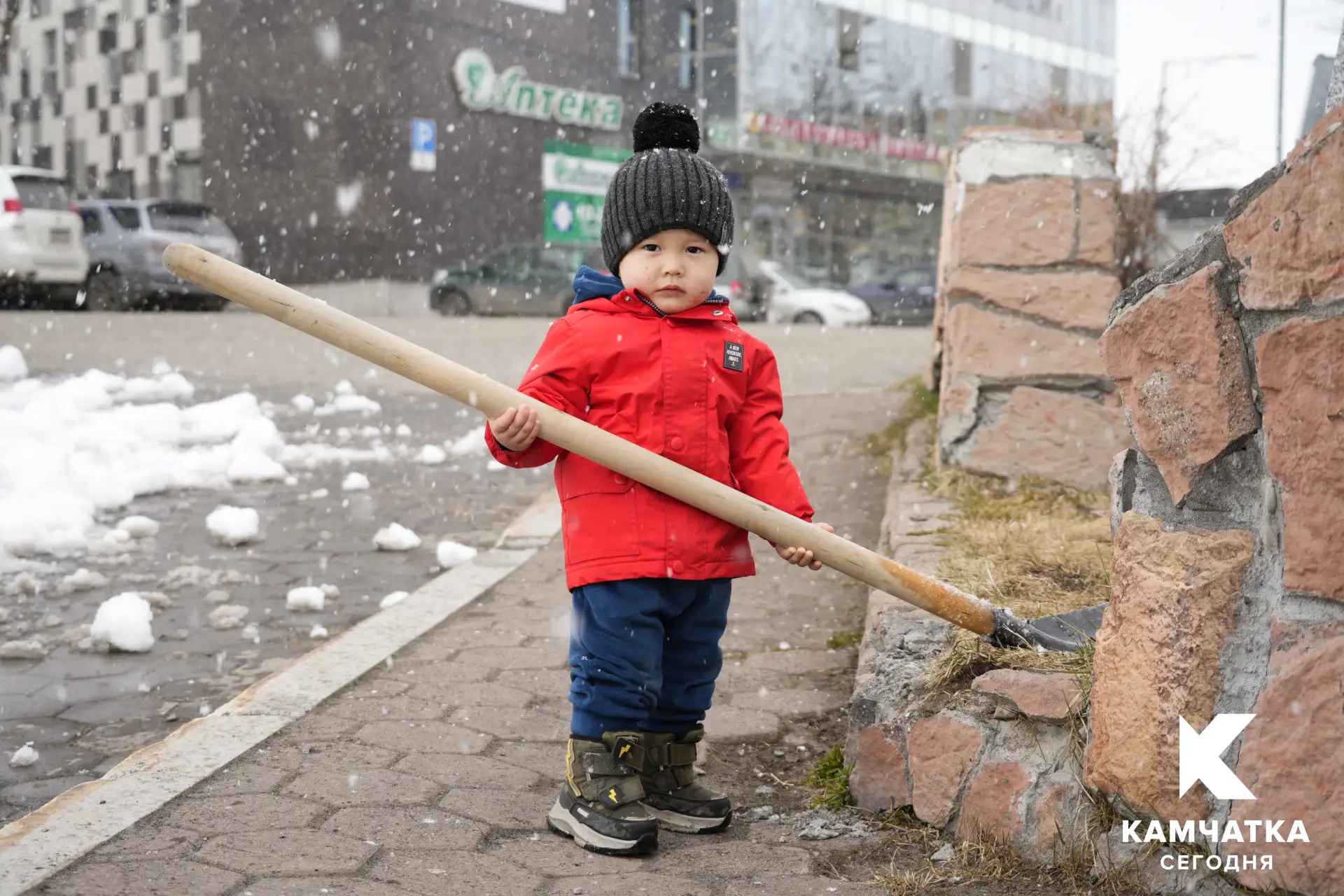 Небольшой мокрый снег, который пошёл в городе сегодня, не помешал желающим наводить чистоту. Люди вышли на улицы с граблями, мётлами и мешками для мусора.