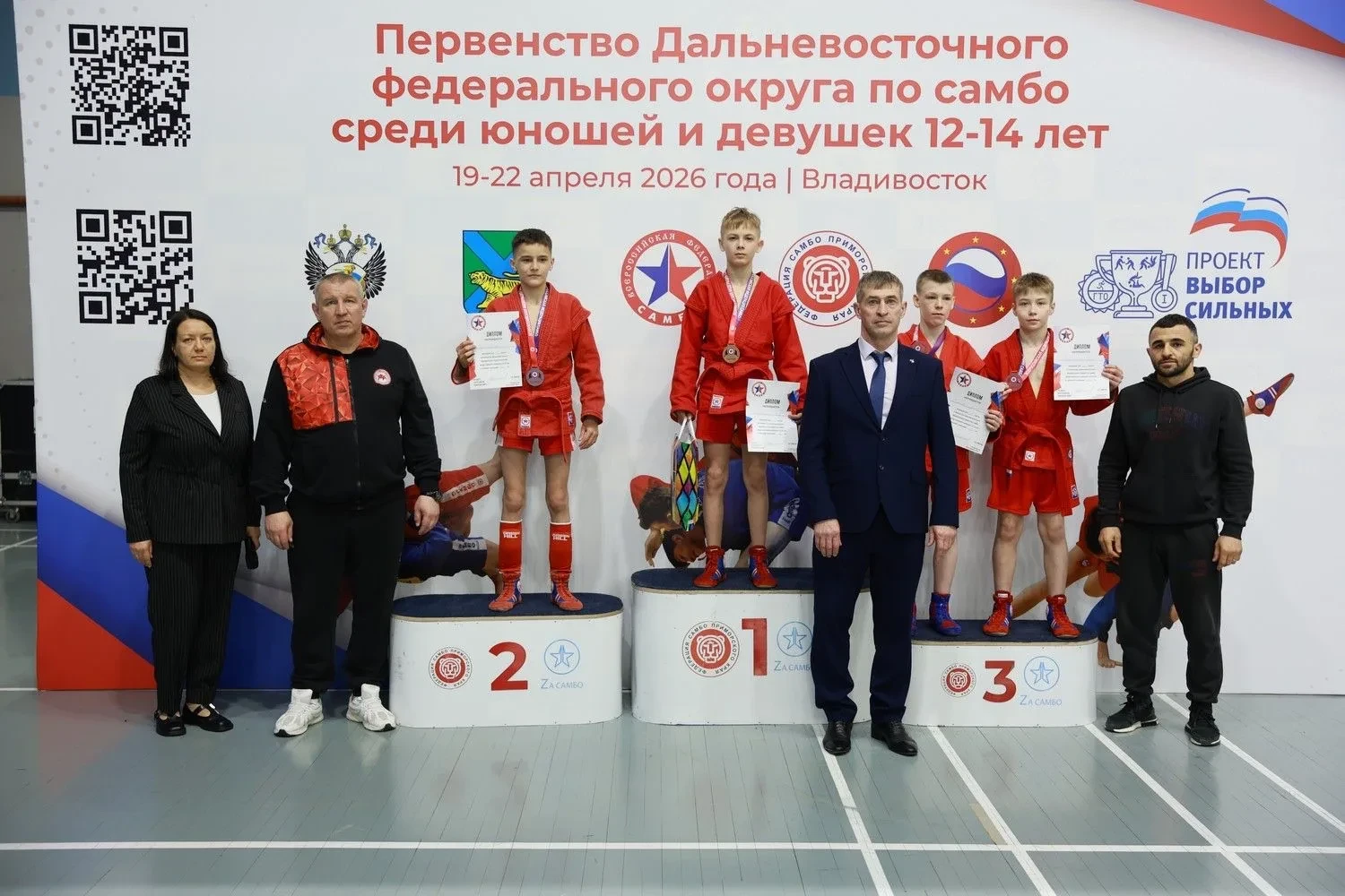 С 19 по 22 апреля в спортивном комплексе «Олимпиец» во Владивостоке прошло первенство Дальневосточного федерального округа по самбо среди юношей и девушек 12–14 лет. В турнире участвовали более 300 спортсменов из 10 регионов, в том числе сборная Камчатского края.