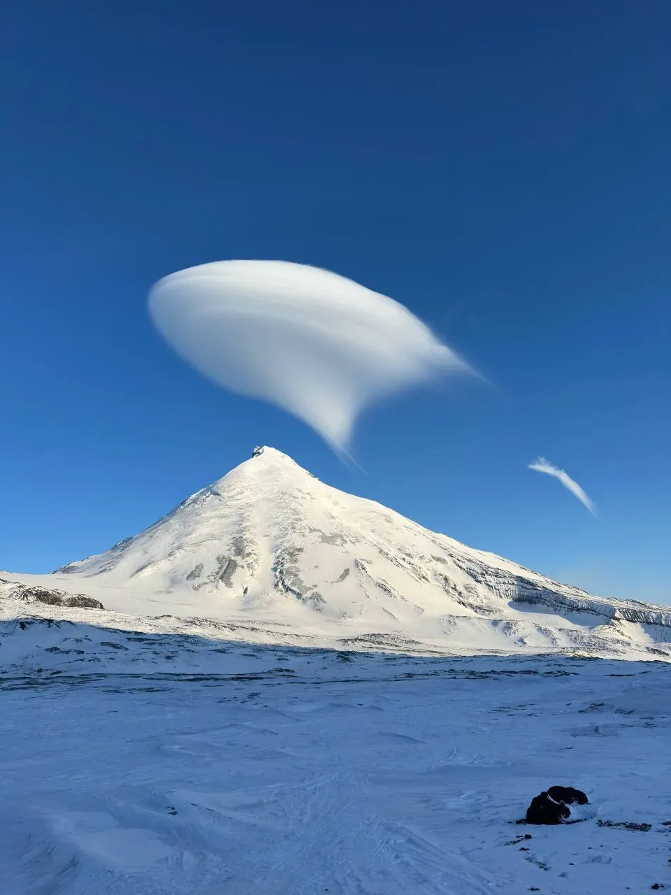 Этот фантастический пейзаж — вовсе не магия и не случайность. Так работает физика воздушных потоков: они огибают исполин и в точности повторяют его геометрию высоко в атмосфере.