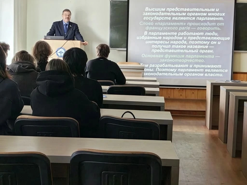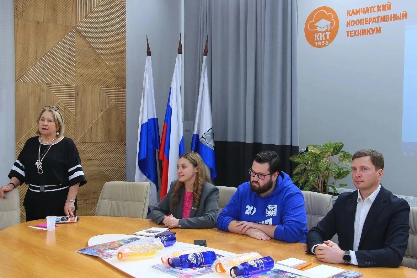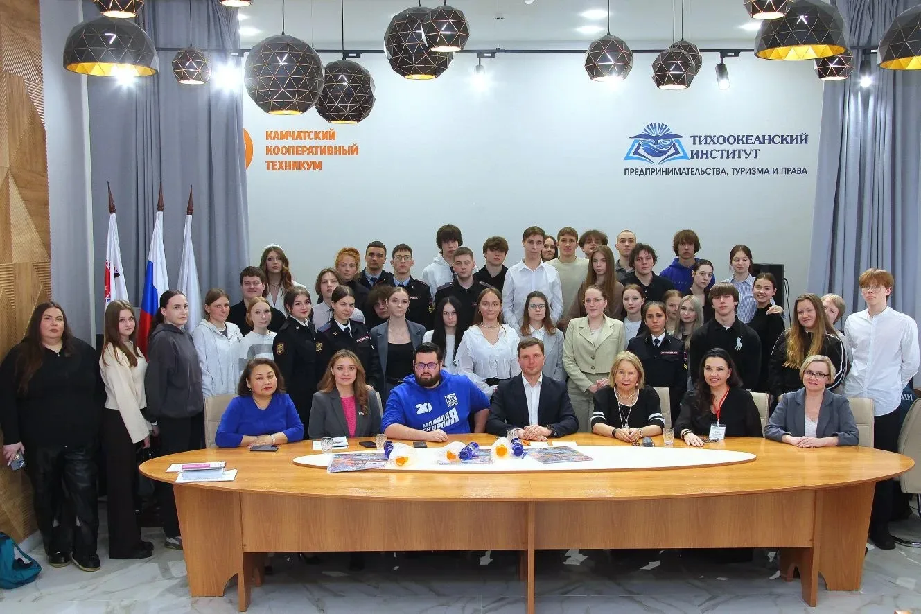Краевой депутат, заместитель секретаря регионального отделения партии «Единая Россия» Анатолий Кирносенко вместе с членами Молодежного парламента Русланом Жерносековым и Анастасией Яшиной также провел парламентский урок для студентов Камчатского кооперативного техникума и Тихоокеанского института предпринимательства, туризма и права.