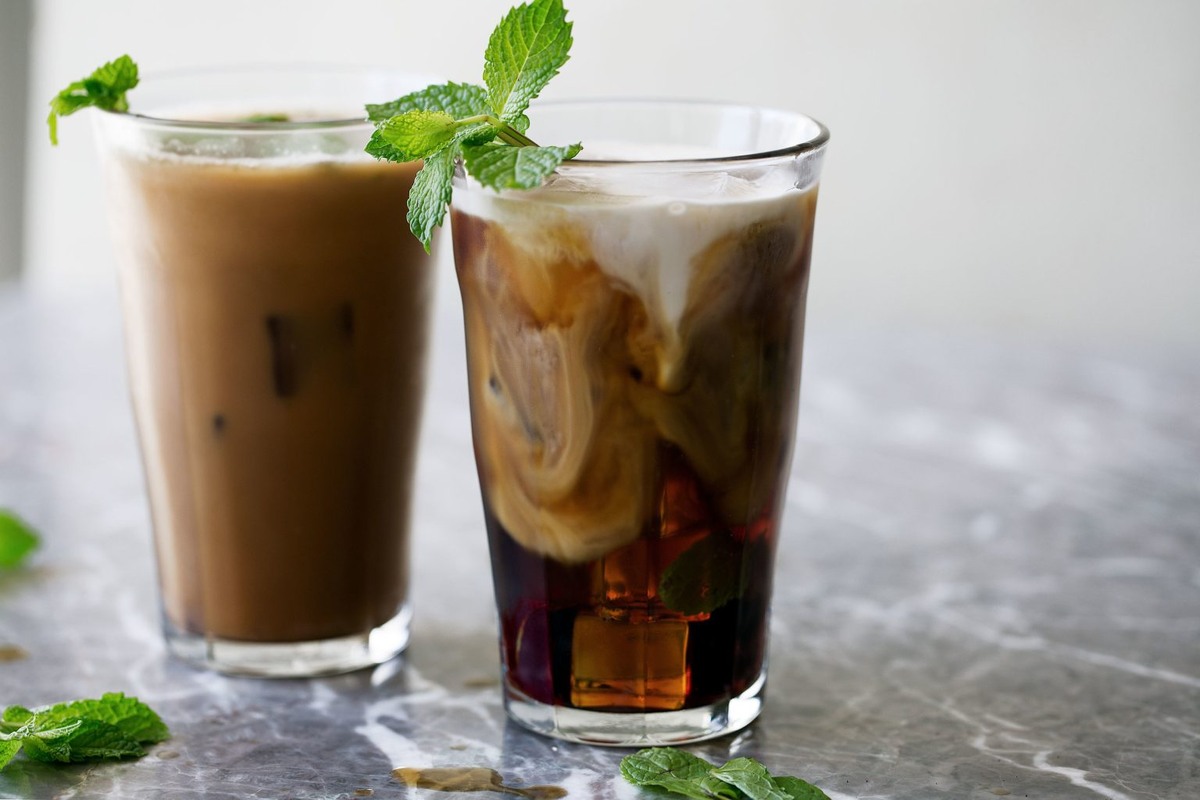 - Летний айс-кофе с мятой: добавьте кубики льда и дольку лайма.