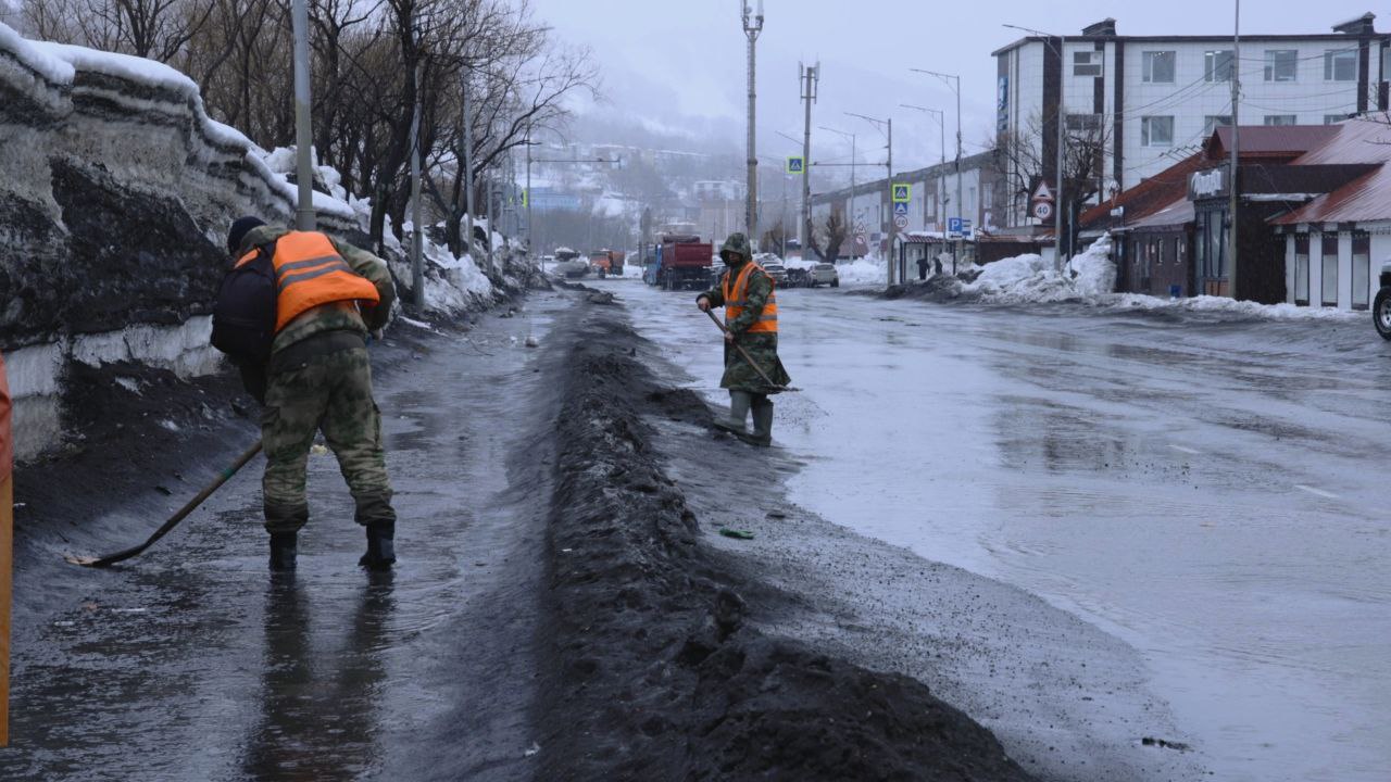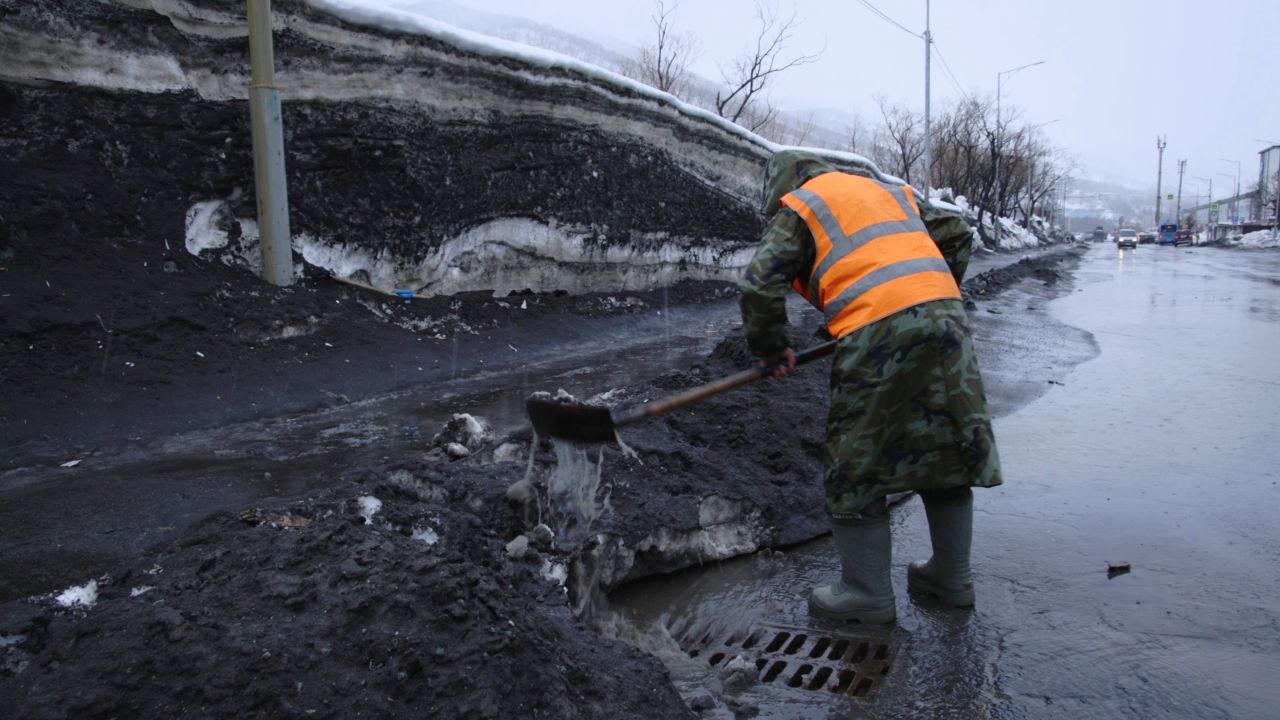 Ливнвки в столице Камчатки чистят вручную из-за мощного циклона