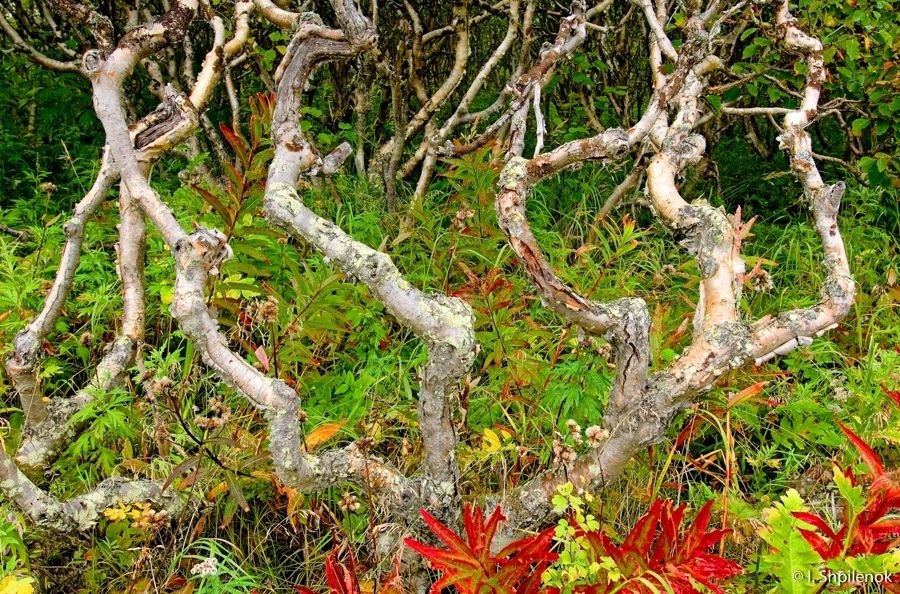 Из-за химических испарений термальных источников стволы и ветви каменных берёз тонкие и очень искривленные, из-за этого создается особый пейзаж. А на скалистых берегах бухты Лаврова в Корякском заповеднике сохранились реликтовые леса из каменной берёзы.