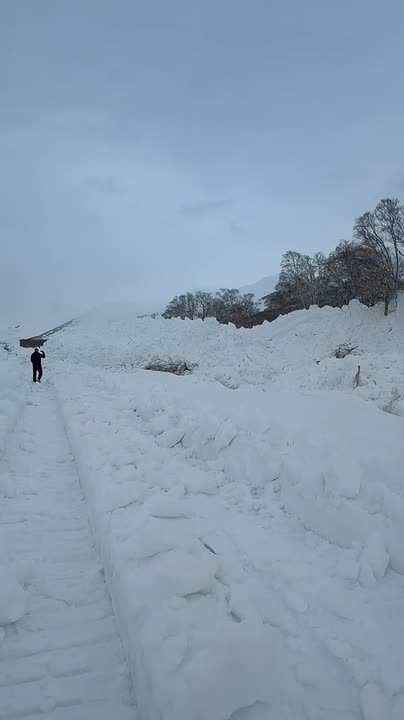 По данным очевидцев, ширина снежной массы - около 250 м, высота - 6 м.