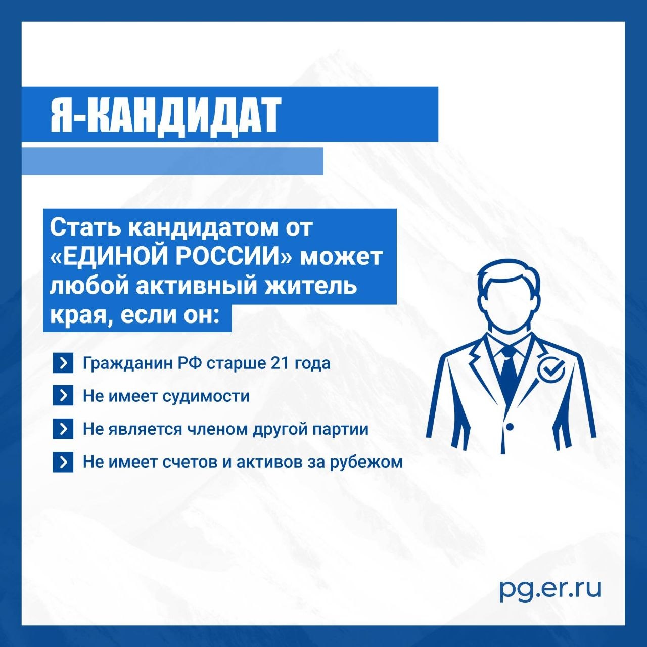 Стать кандидатом от «Единой России» — если чувствуете в себе силы менять жизнь региона к лучшему.