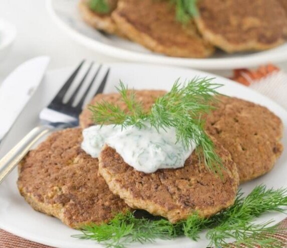 8. Готовые оладьи подаются к столу, щедро смазанными ароматным соусом.