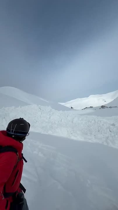 Ребята катались в районе Вилючинского вулкана, когда рядом обрушилась мощная снежная лавина. Благодаря быстрой реакции им удалось избежать трагедии — никто не пострадал.