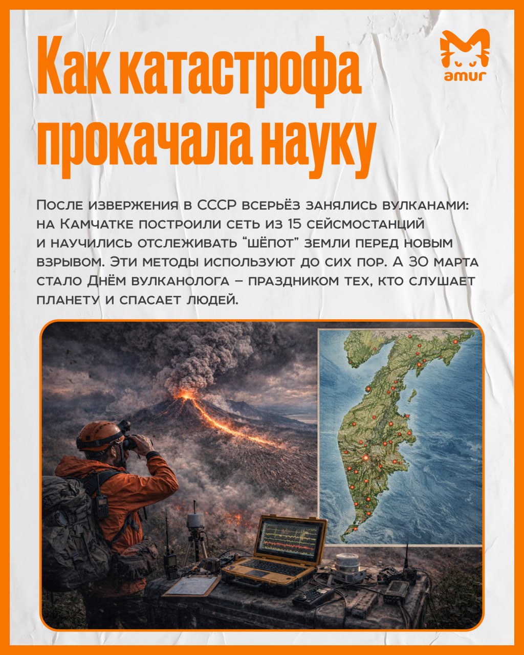 После такого вулканологию в СССР прокачали на максимум: начали строить системы наблюдения, учиться предсказывать извержения и вообще внимательнее слушать, что там бурчит под ногами. А дату — 30 марта — закрепили официально: теперь это День вулканолога.