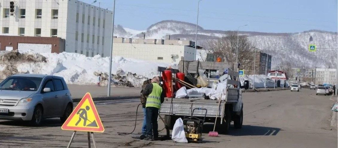 Ямы в Вилючинске латают холодным асфальтом — до полноценного ремонта ещё месяц