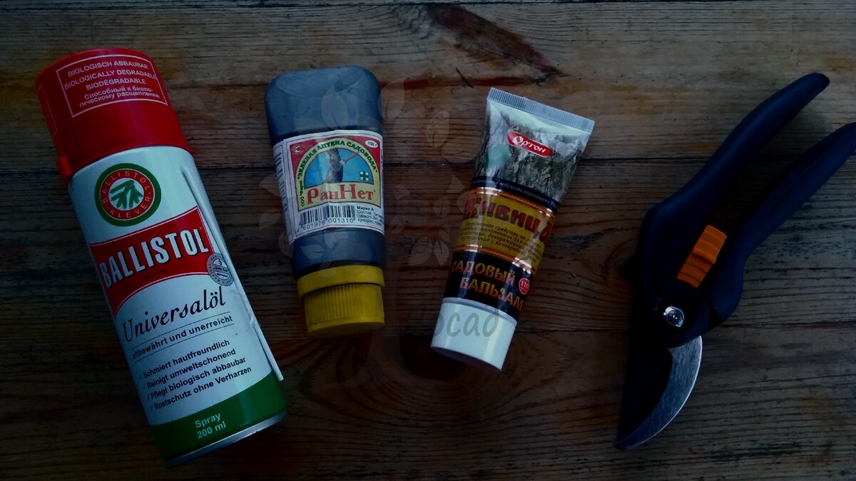 Для правильной обрезки яблонь пригодится остро заточенный инструмент: секатор, нож или ножовка. Для обработки ран деревьев также стоит запастись специальным средством. В отличие от садового вара, который сложно найти и требует времени для приготовления, можно использовать масляную краску для крупных спилов и бальзам на основе смолы для мелких. Не стоит забывать, что свежие срезы требуют времени для заживления, поэтому их стоит оставлять на 5-7 дней без обработки.