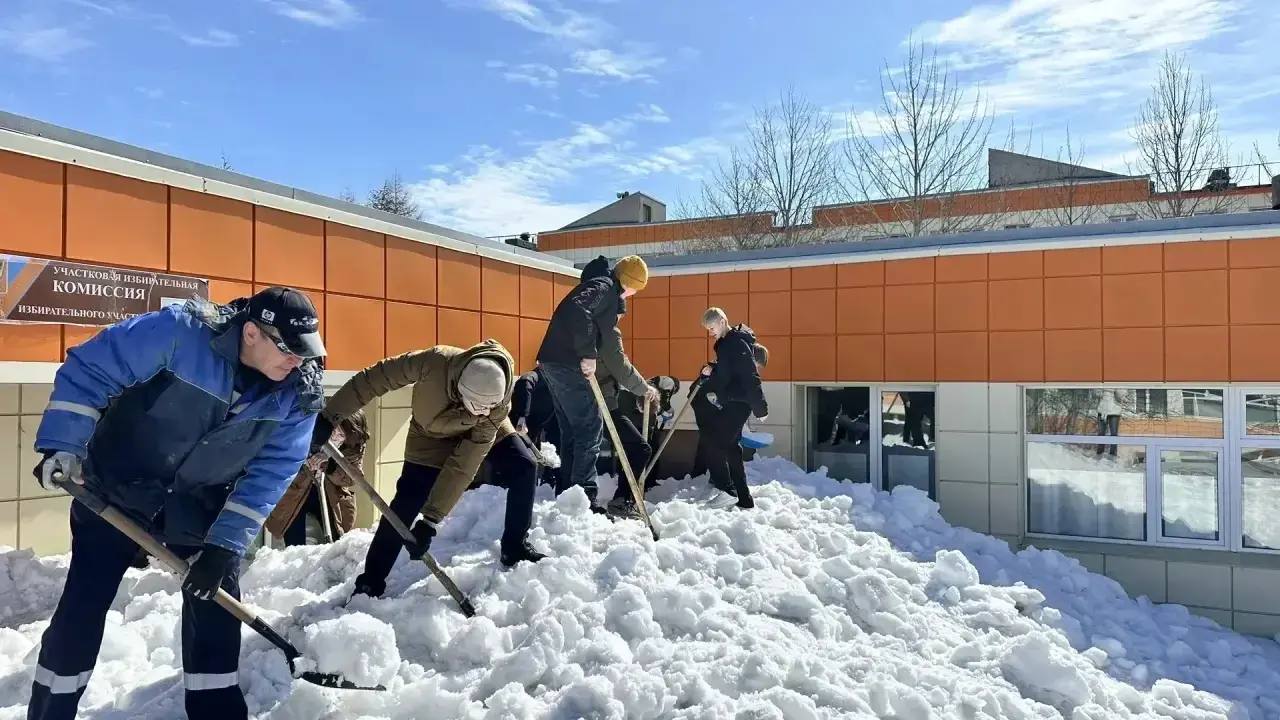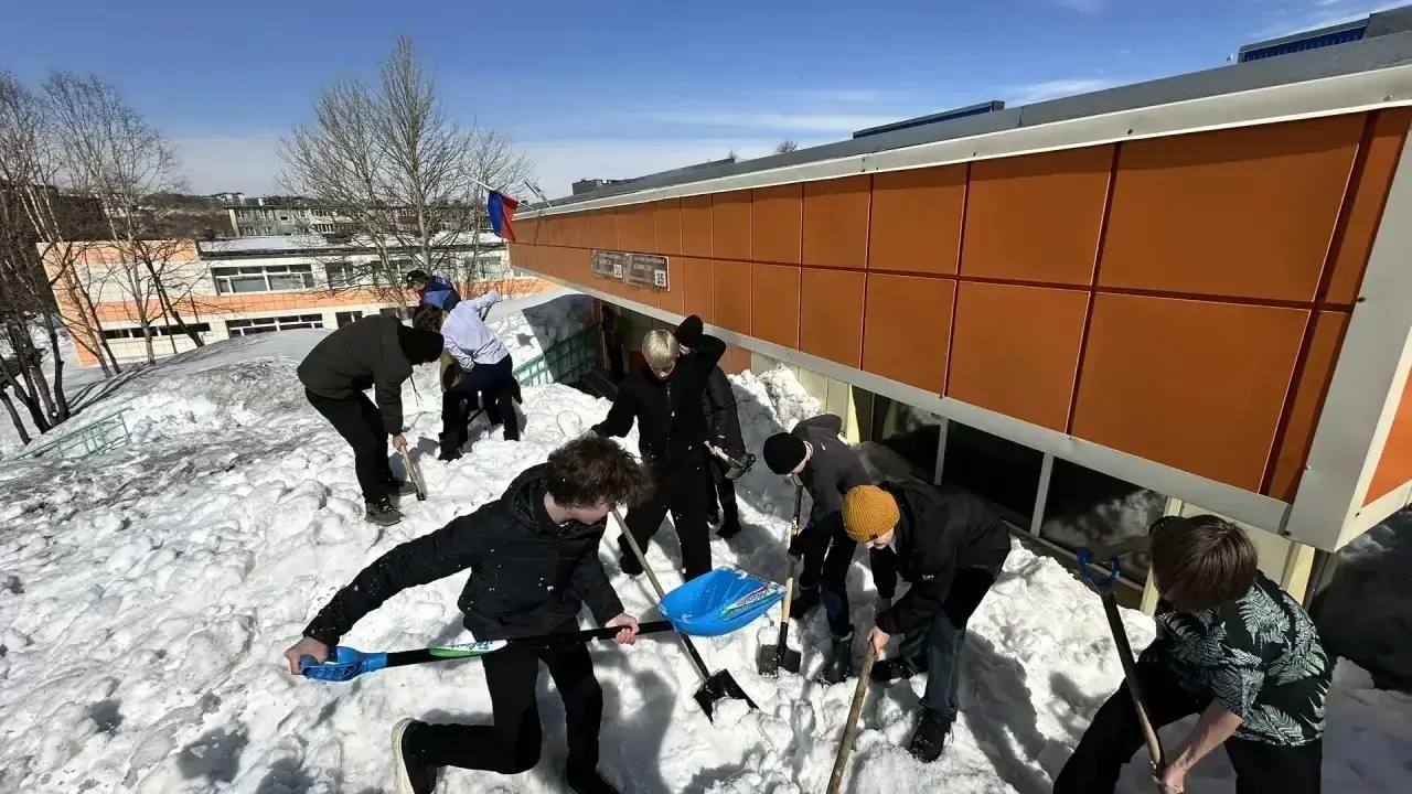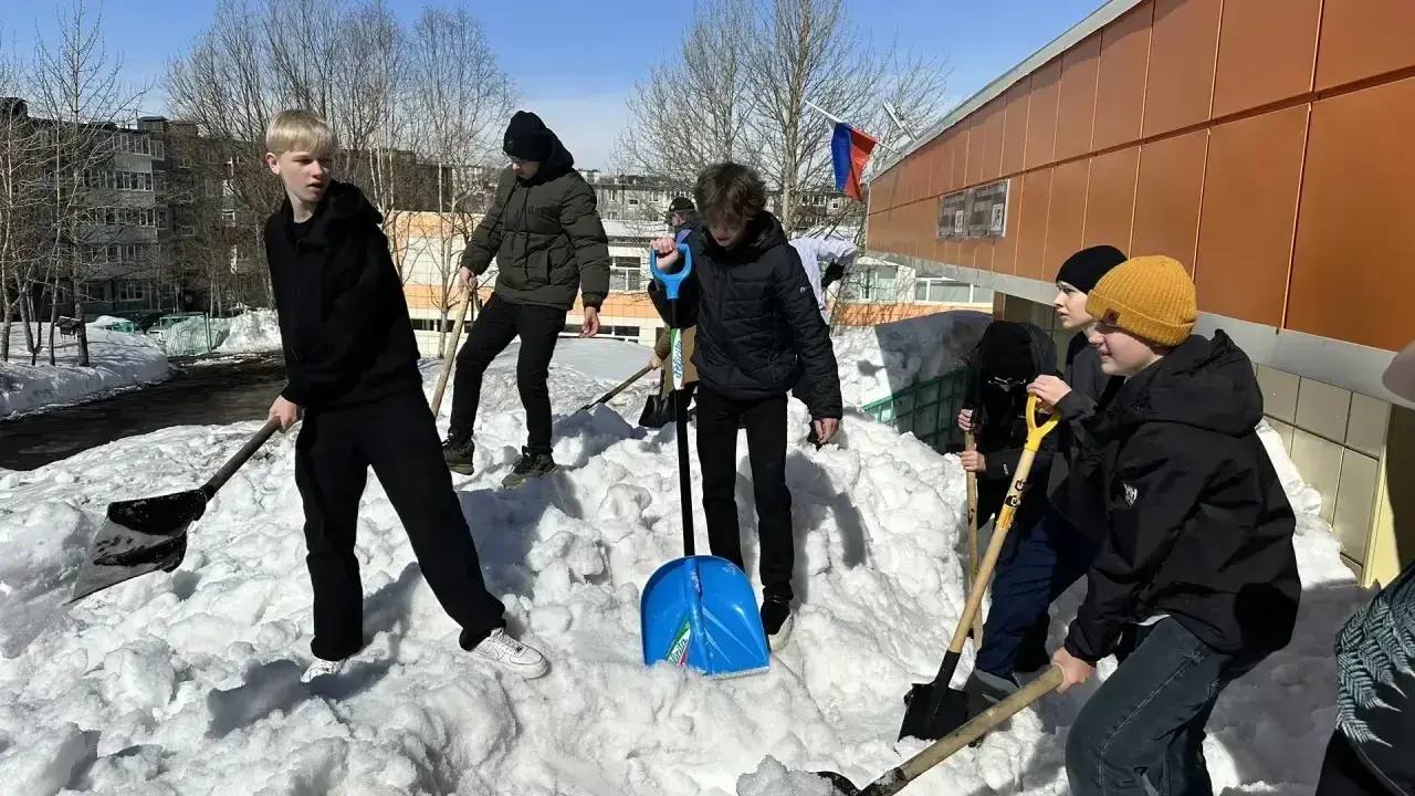 Сегодня в средней школе № 34 Петропавловска-Камчатского стартовал первый субботник: ребята охотно наводят порядок на территории школы и вокруг неё, убирают снег.