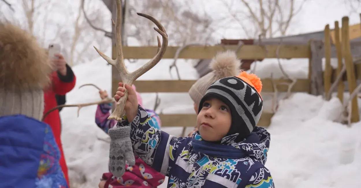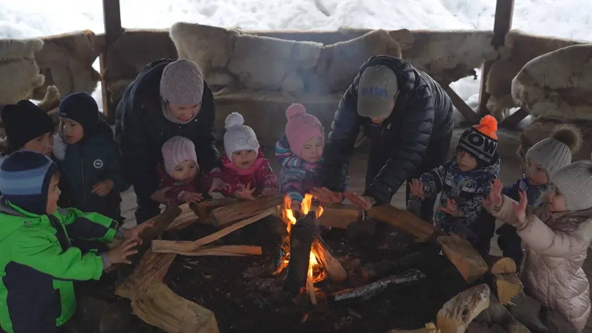 Во время экскурсии они познакомились с жизнью северных обитателей, научились общаться с собаками, погрелись у костра и кормили оленей.