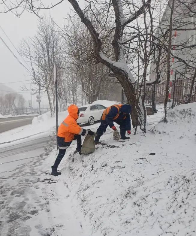 Дорожные службы продолжают работы по снятию наледи и вывозу снежных масс.