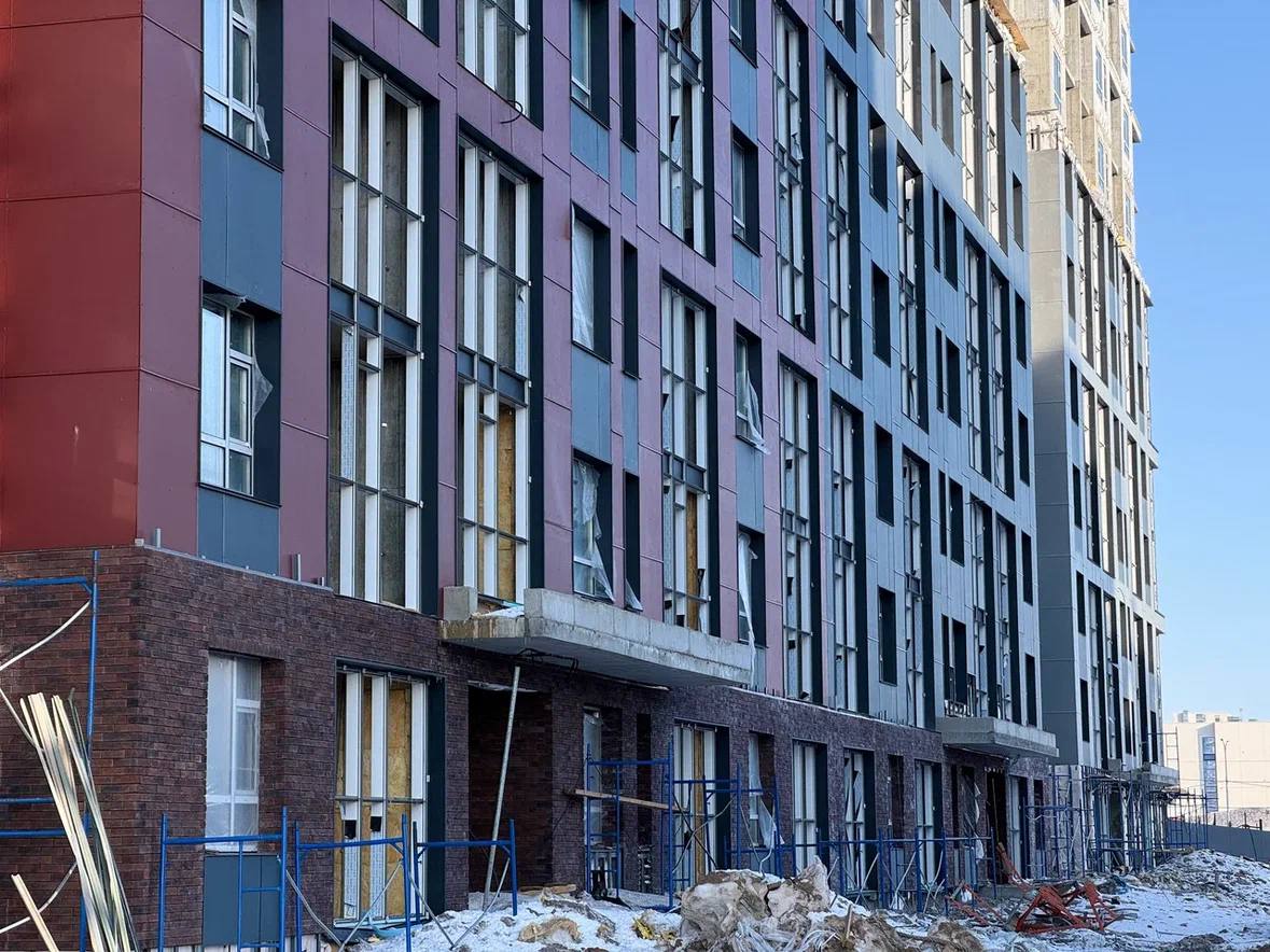 На данный момент дома первой очереди возведены до уровня 11–12 этажей, полностью завершено строительство двух подземных паркингов, построены электрические подстанции, на завершающем этапе находится возведение котельной. Электроснабжение объектов уже обеспечено, а завершение полного цикла работ по водо- и теплоснабжению намечено на июнь 2026 г.