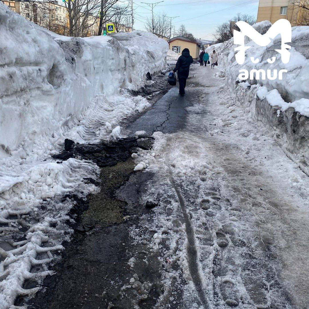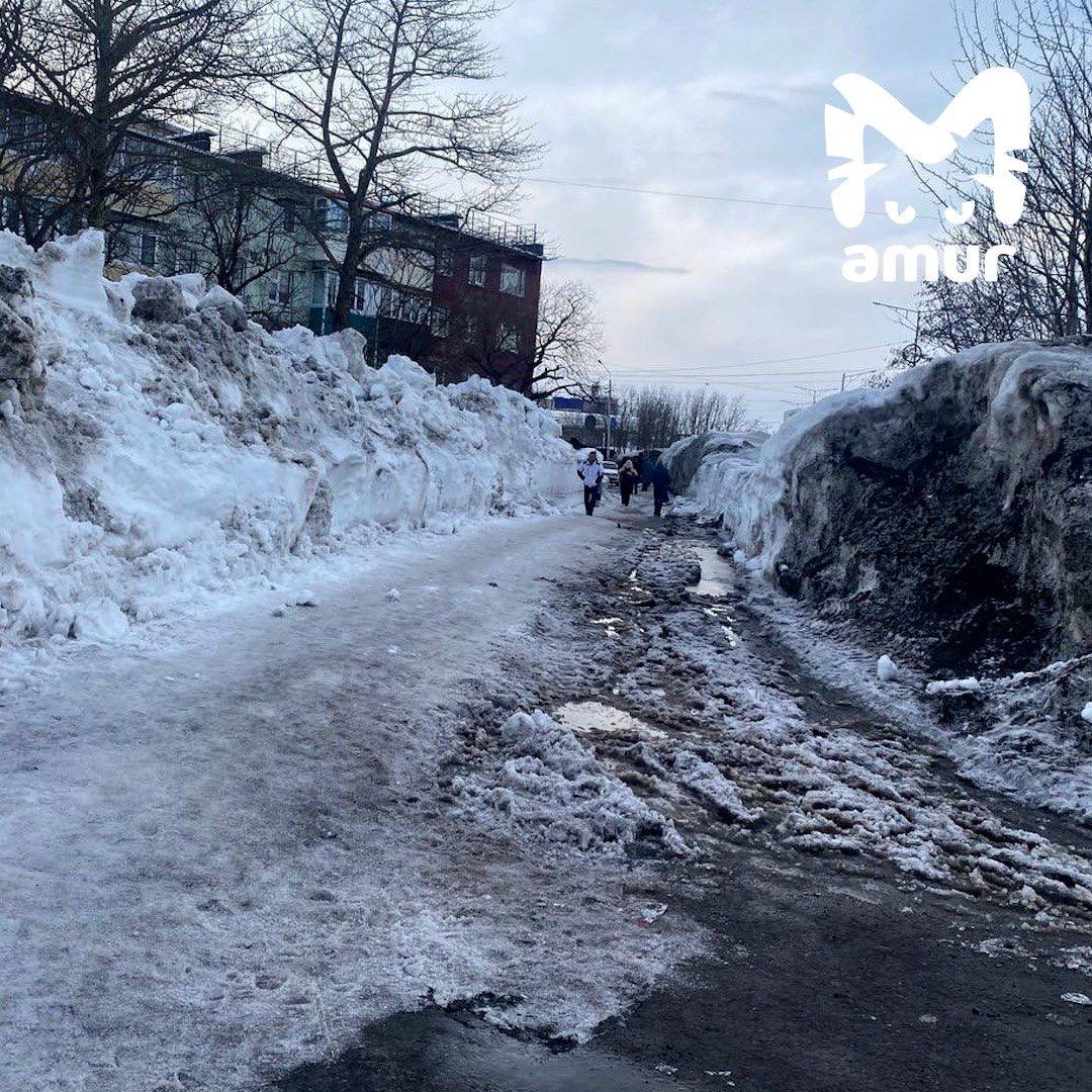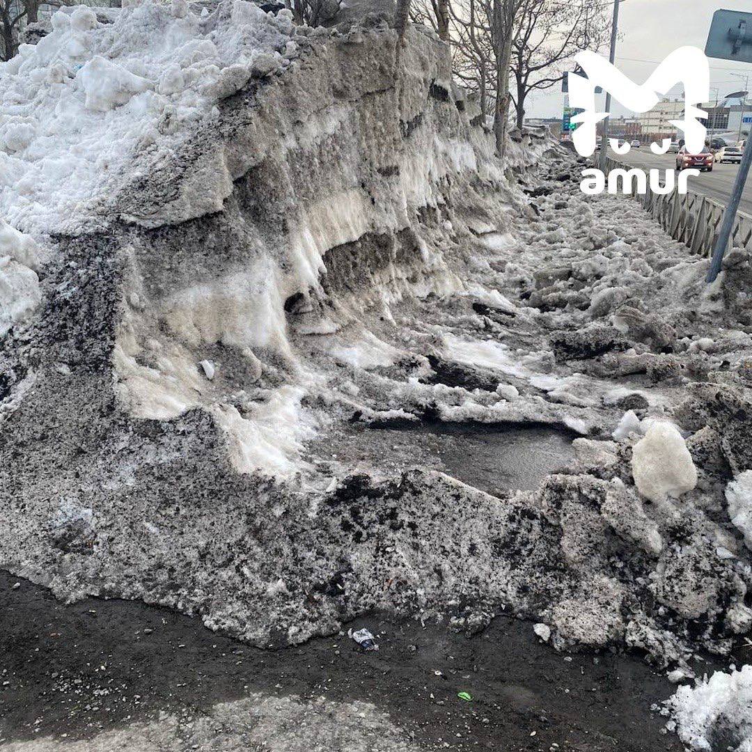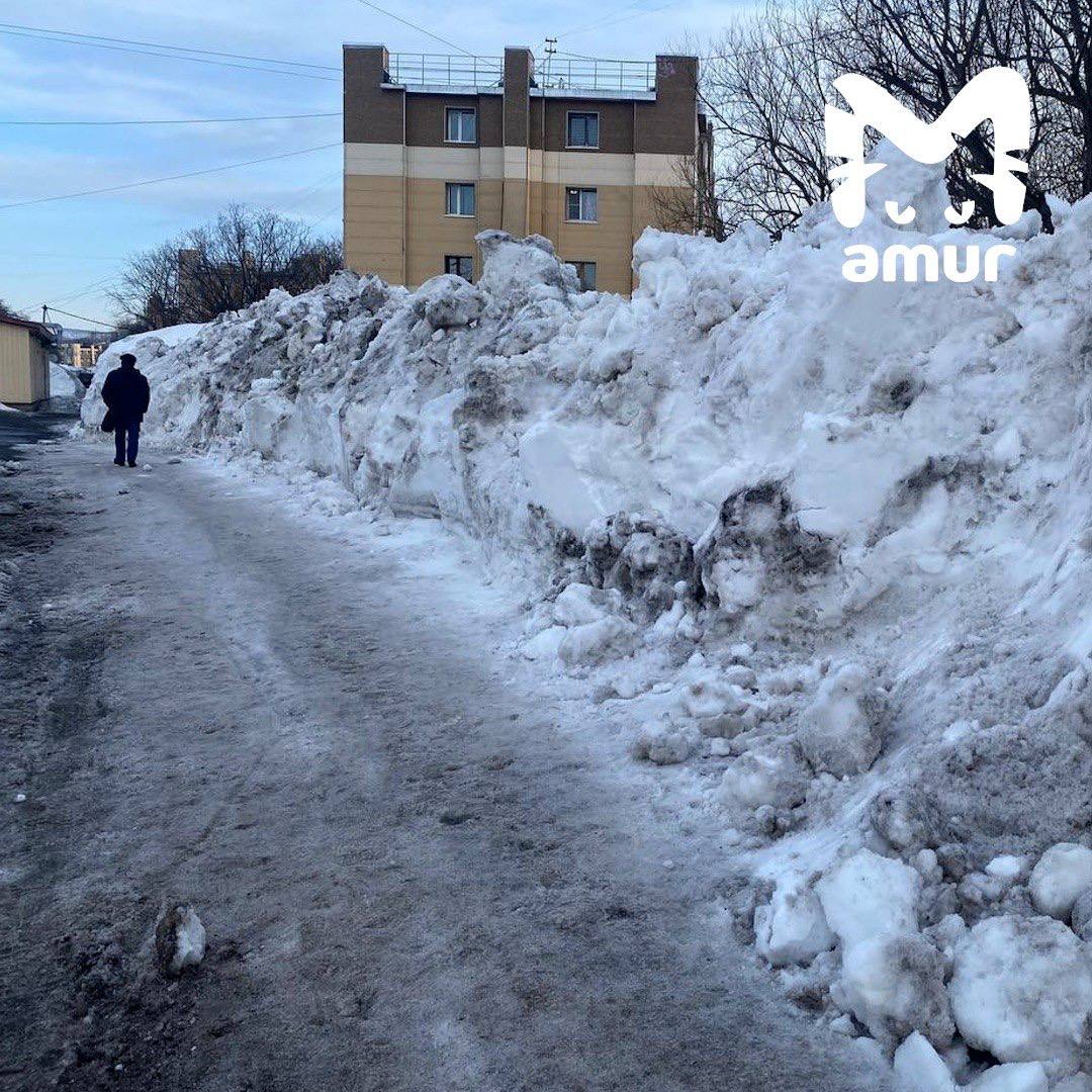 Снежные завалы высотой с человеческий рост всё ещё не убрали в Петропавловске-Камчатском.