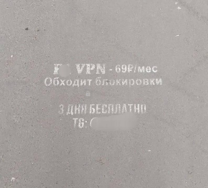 В российских городах начали появляться надписи с рекламой VPN прямо на асфальте. Фото таких объявлений распространяются в соцсетях.