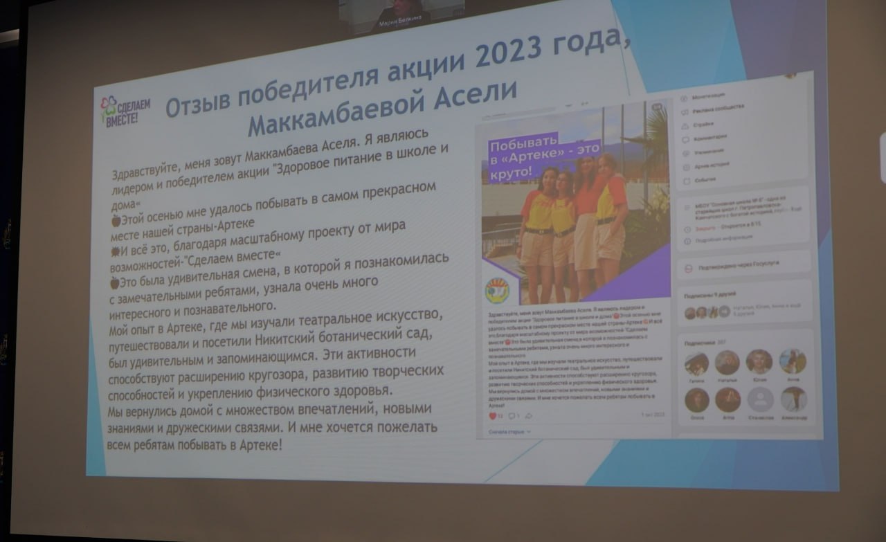 «В рамках этих акций дети проводят мероприятия и уроки в своей общеобразовательной организации. За ними закрепляется главный куратор-педагог, который их обязательно сопровождает, наставляет и помогает. Здесь очень важно отметить, что все проведённые мероприятия ребятам необходимо размещать на цифровой платформе проекта. Тогда жюри, которое проводит оценку, обязательно отметит лучшие работы, и затем лучшие участники будут направлены в международный лагерь «Артек» – главный приз данного проекта»,