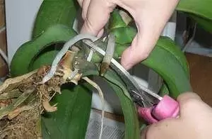 - Выньте орхидею из горшка, аккуратно очистив корневую систему от старого субстрата.