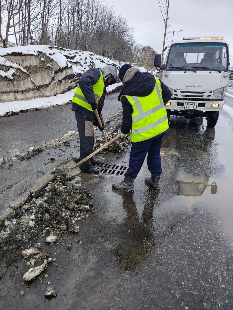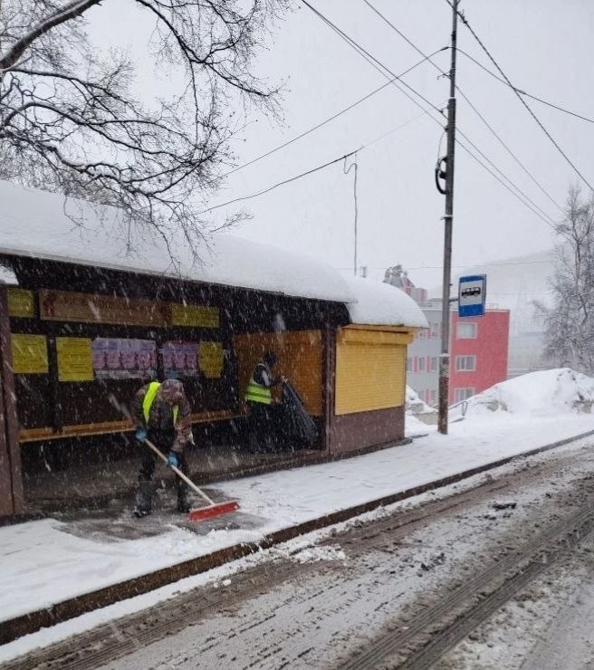 Бригады ручного труда проводят уборку на остановочных павильонах, расчищают колодцы ливневых канализаций.