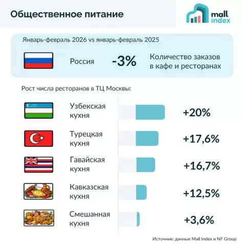 Согласно данным Mall Index, в первые два месяца 2026 года наблюдается небольшой спад в заказах в российских кафе и ресторанах — снижение составило 3% по сравнению с прошлым годом. Эта тенденция заставила операторов общественного питания переосмыслить свои форматы и предложения.