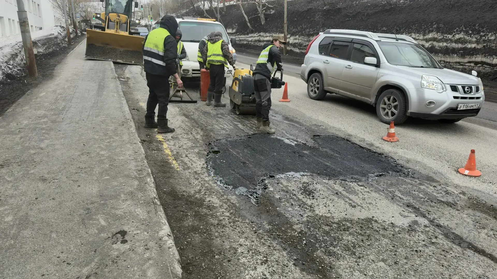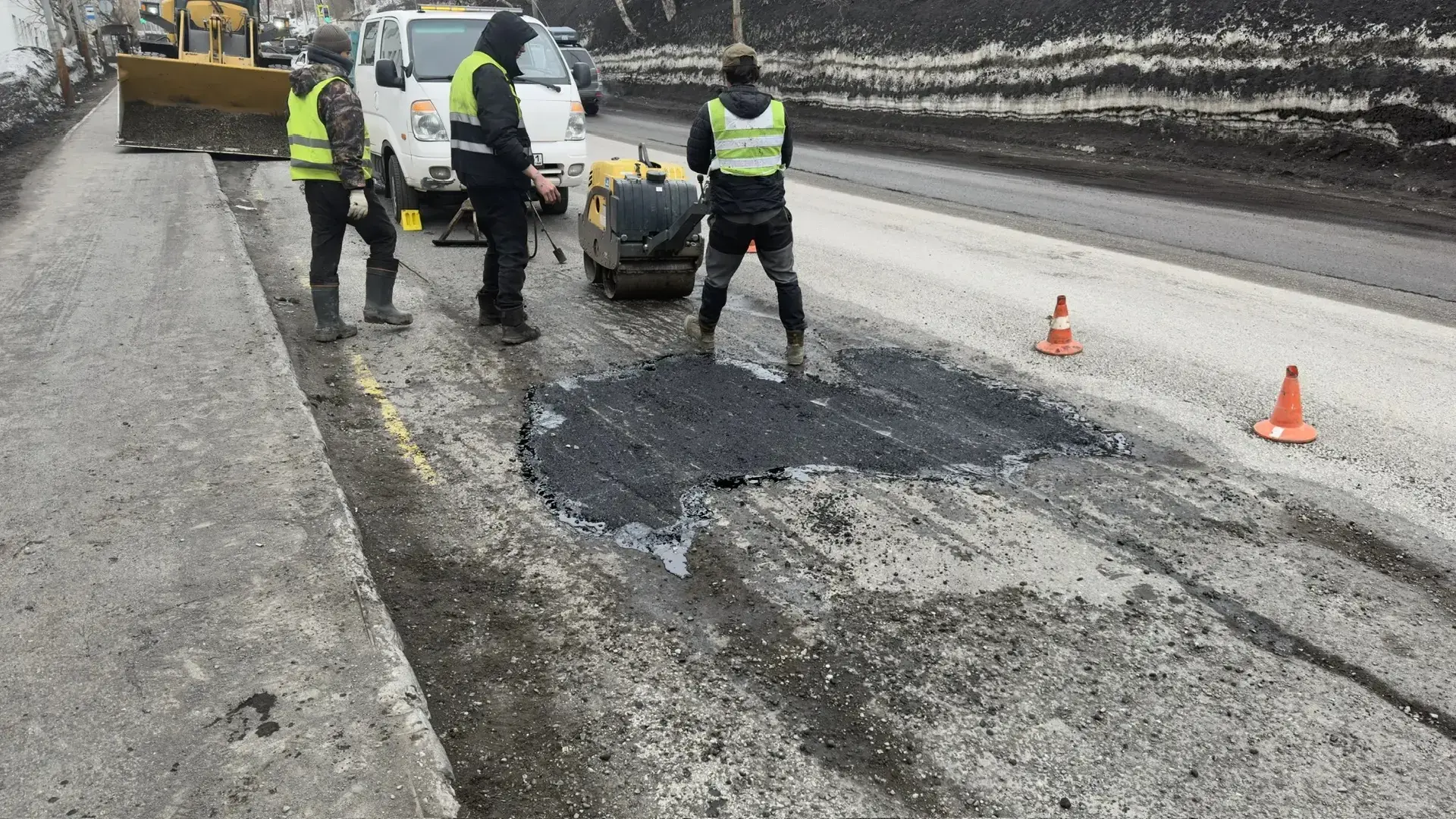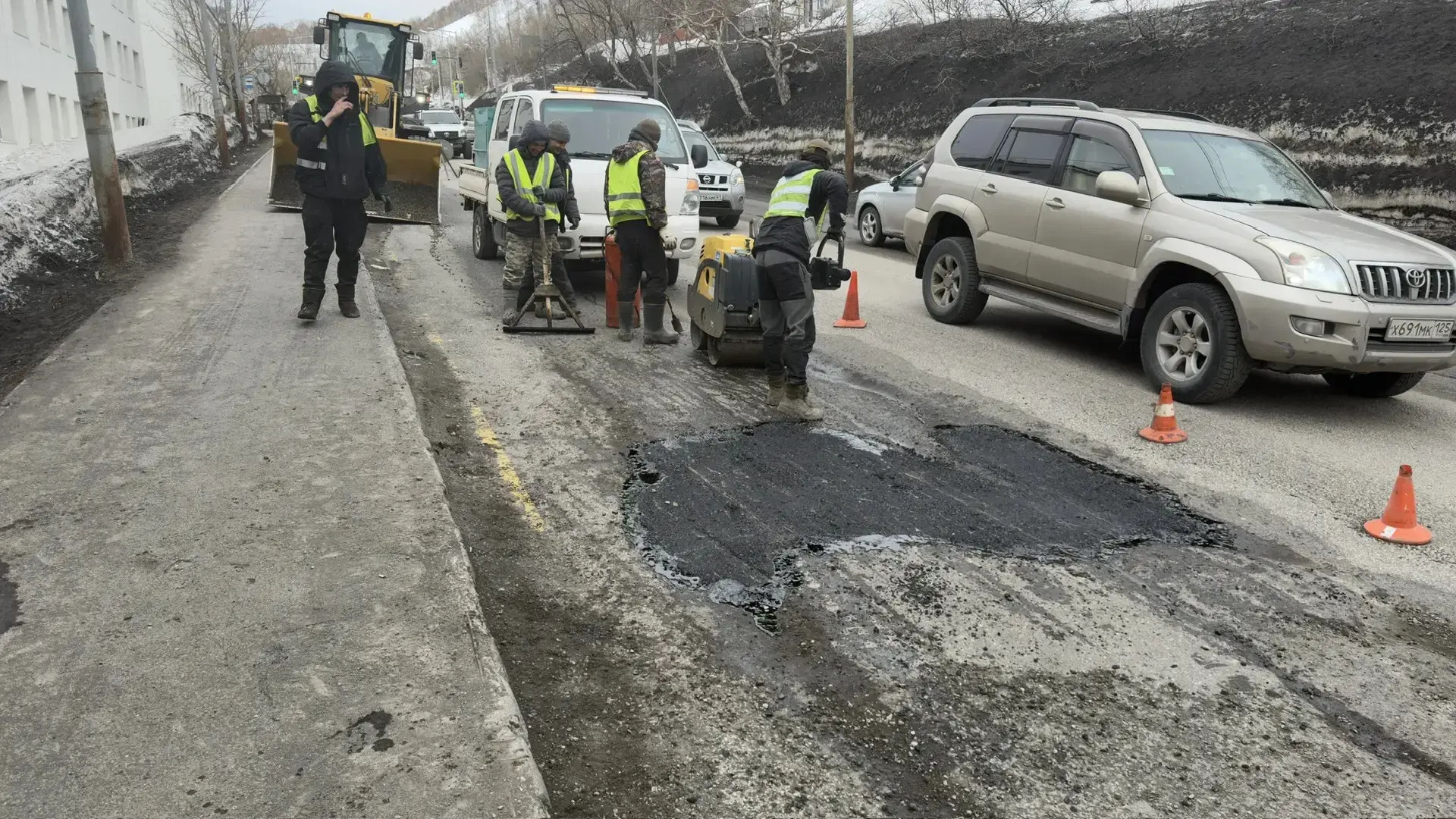 В Петропавловске-Камчатском приступили к временному ямочному ремонту. Это позволит частично восстановить самые критичные участки до начала основного обновления асфальтобетонного покрытия.
