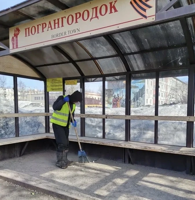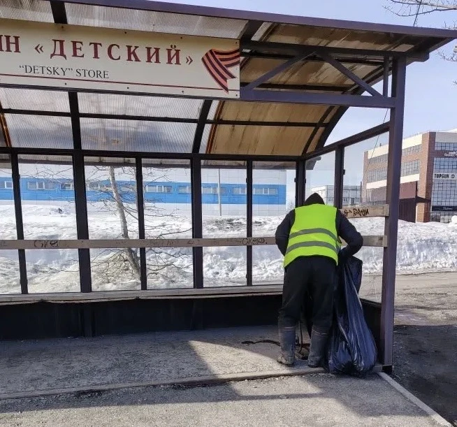 В течение дня бригады ручного труда убирали автобусные павильоны и прилегающие к ним территорий на ул. Тушканова, пр. Победы.