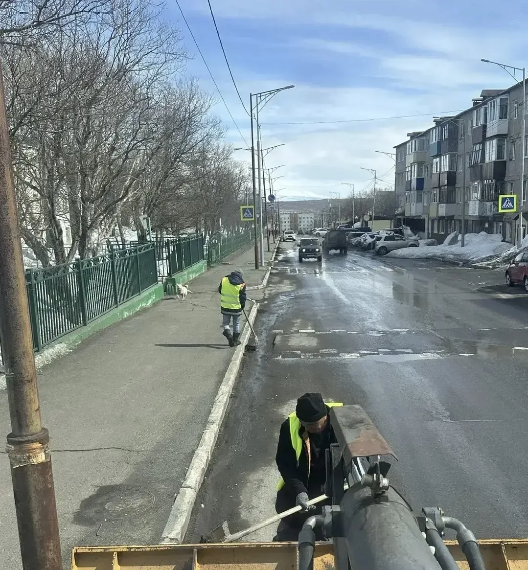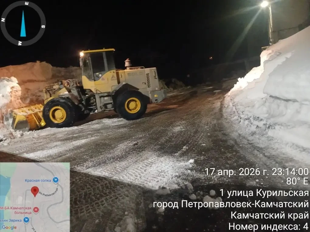 В ночную смену проводились работы по обработке дорог на ул. Озерновская коса, ул. Ленинская, пл. Щедрина, ул. Рябиковская, ул. Океанская, ул. Петропавловское шоссе, ул. Индустриальная.
