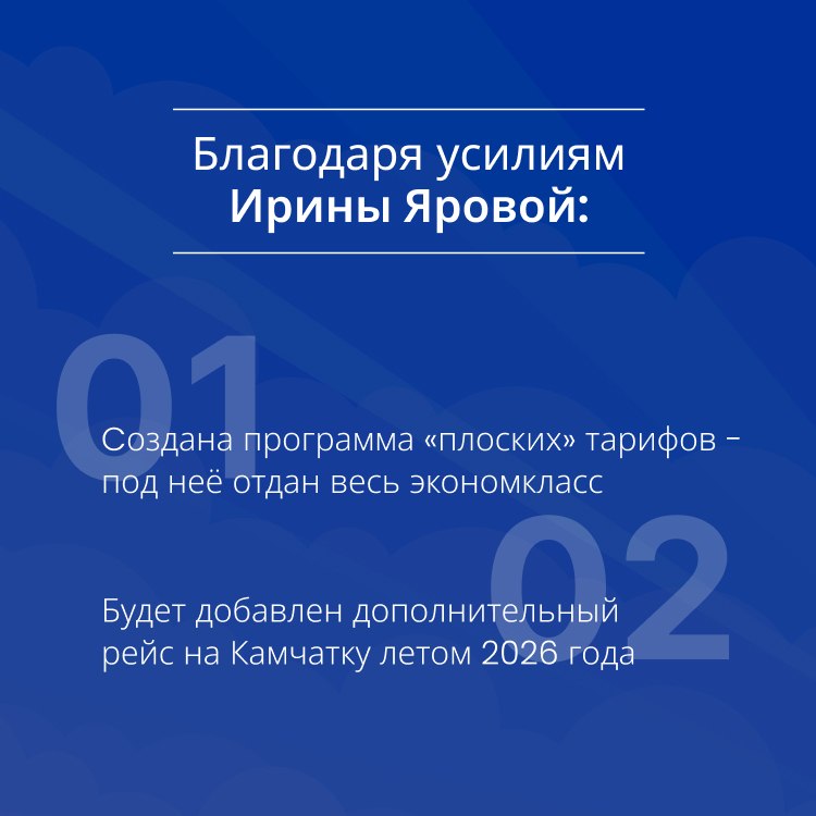 Напомним, ранее Ирина Яровая лично предложила Владимиру Путину ввести субсидированные перелеты для жителей Дальнего Востока. С тех пор программа неоднократно расширялась.
