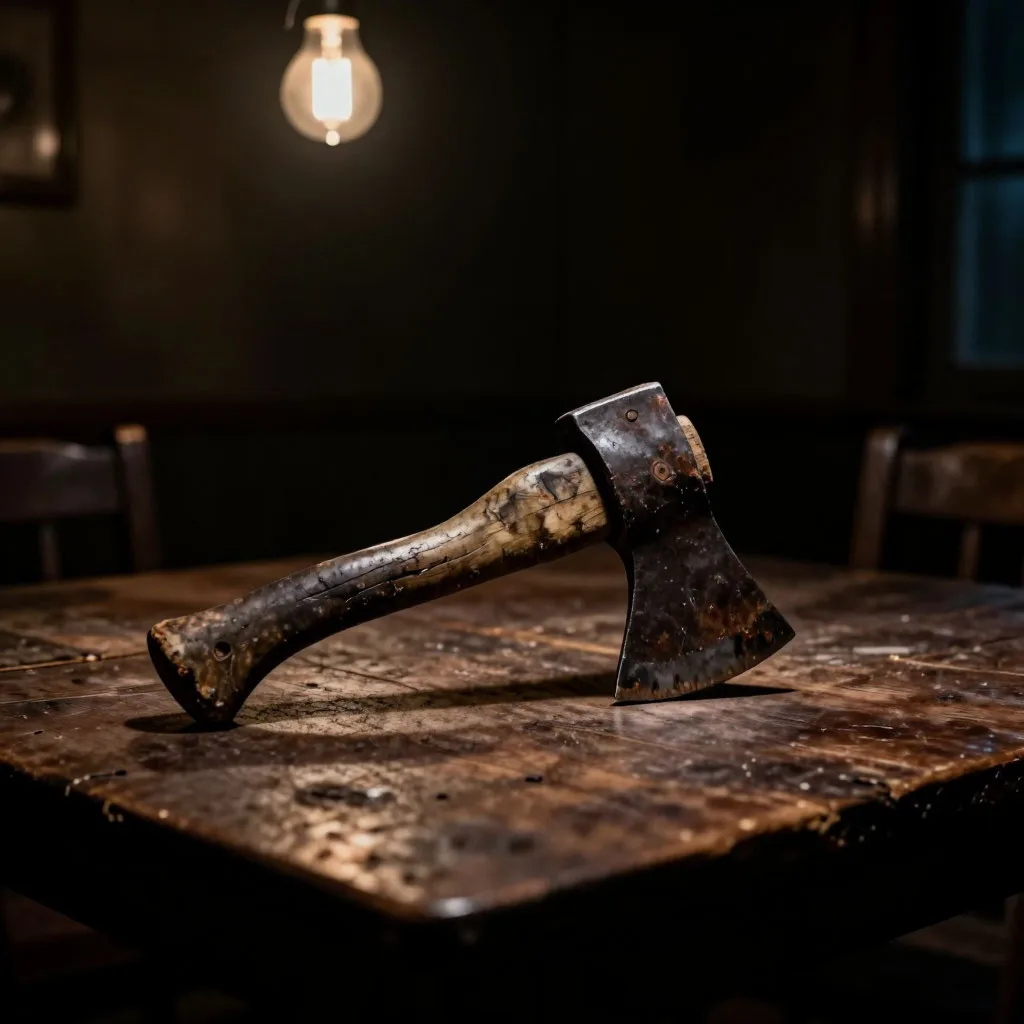 Через некоторое время он лично явился в гараж к оппоненту, принялся угрожать физической расправой, схватил топор и с размаху всадил его в деревянный стол — пробил насквозь.