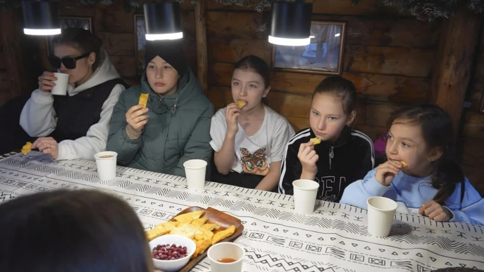 Программа экскурсии включала знакомство с ездовыми собаками, кормление оленей, катание на снегоходах и прогулки по заснеженному лесу. Завершилась поездка чаепитием с домашними лепёшками и ягодами.