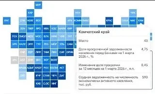 Камчатский край вошел в группу регионов с наиболее высокой кредитной дисциплиной, заняв 43-е место из 85 в общероссийском рейтинге. По данным на начало марта, доля просроченной задолженности жителей региона перед банками составила 4,75%, что практически соответствует среднему показателю по стране (4,7%).