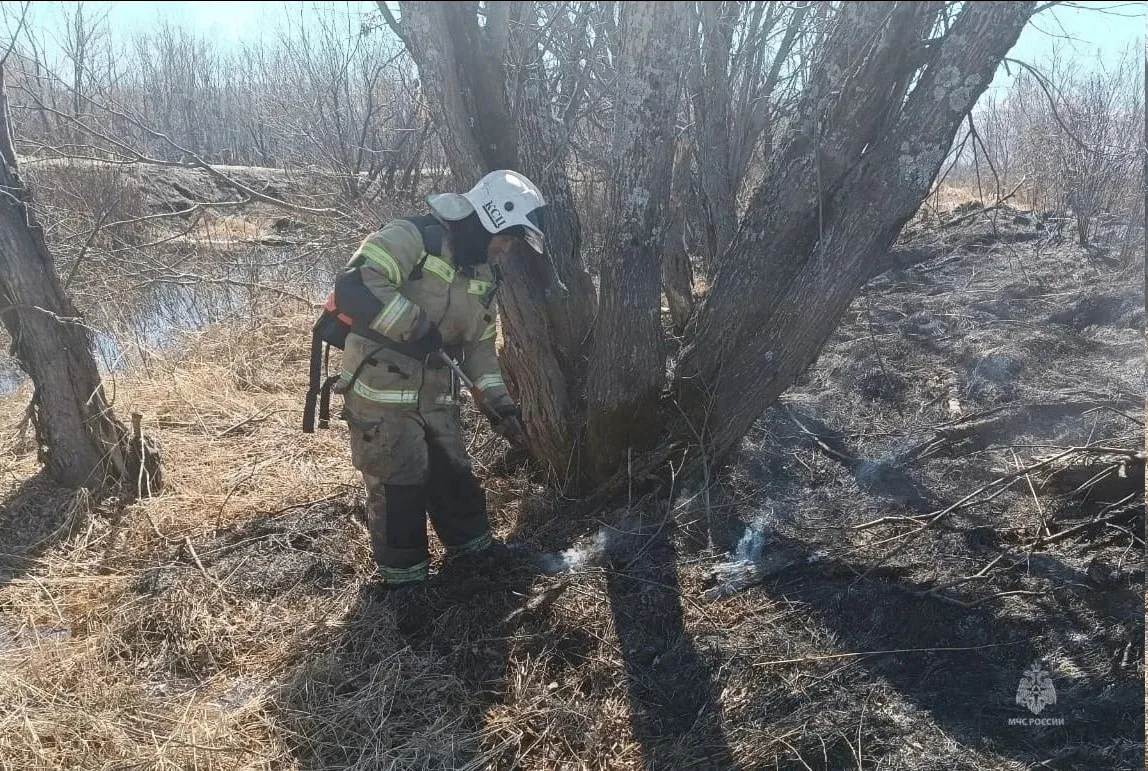 Однако первый ландшафтный пожар уже был. 11 апреля в Петропавловске на Уссурийской выгорело 100 квадратов сухой травы.
