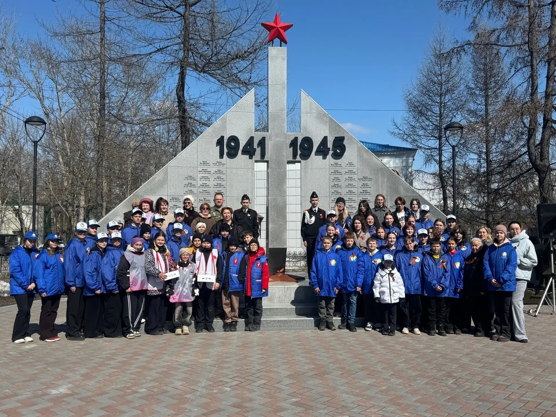 А в городе Елизово акция стартовала на территории обновлённого мемориального комплекса памяти участников Великой Отечественной войны. В ознаменование начала акции елизовские волонтёры развернули огромное полотно Георгиевской ленты.