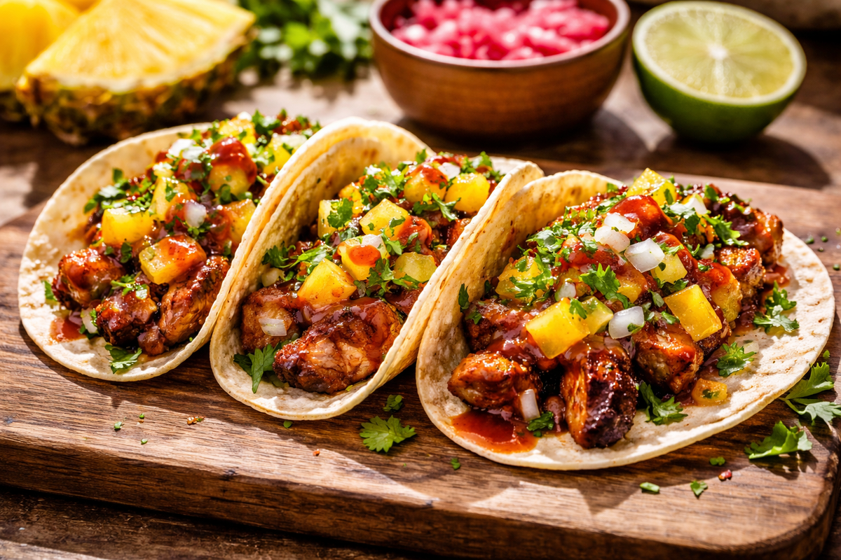 Мексика славится своими уличными угощениями, и такос аль пастор — это истинный символ мексиканской кухни. Это не просто свинина с ананасом, а настоящее произведение кулинарного искусства, полученное благодаря маринаду на основе горького апельсина, копчёной паприки и знаменитого ачиоте. Сегодня можно легко воспроизвести этот уличный шедевр в домашних условиях, обойдясь без вертела и традиционного дровяного гриля.